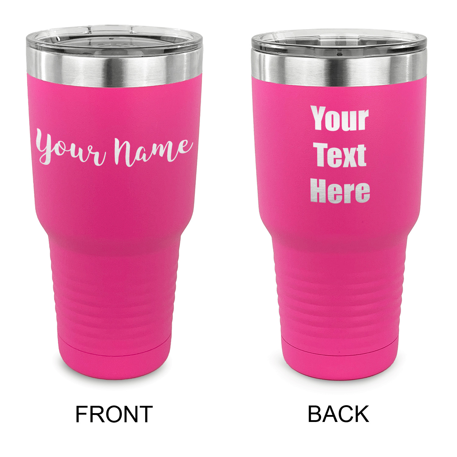 With our personalized 30 oz double wall stainless steel tumblers, you'll never have to settle for a plain, boring tumbler again! These tumblers will be a wonderful addition to your drinkware collection and will make those long commutes much brighter. Personalize one for yourself, or give these personalized tumblers as a gift to relatives, friends, or coworkers!