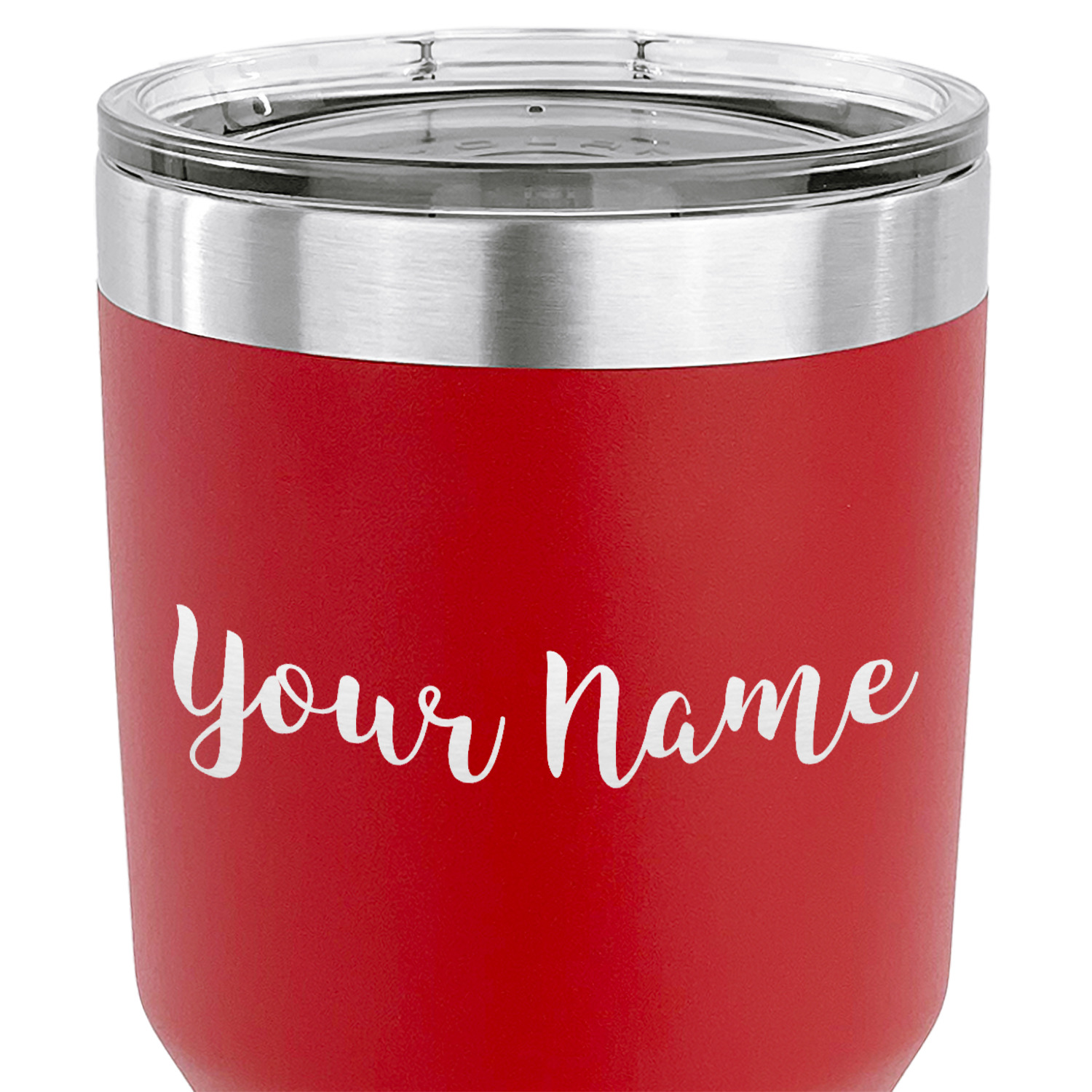 With our personalized 30 oz double wall stainless steel tumblers, you'll never have to settle for a plain, boring tumbler again! These tumblers will be a wonderful addition to your drinkware collection and will make those long commutes much brighter. Personalize one for yourself, or give these personalized tumblers as a gift to relatives, friends, or coworkers!