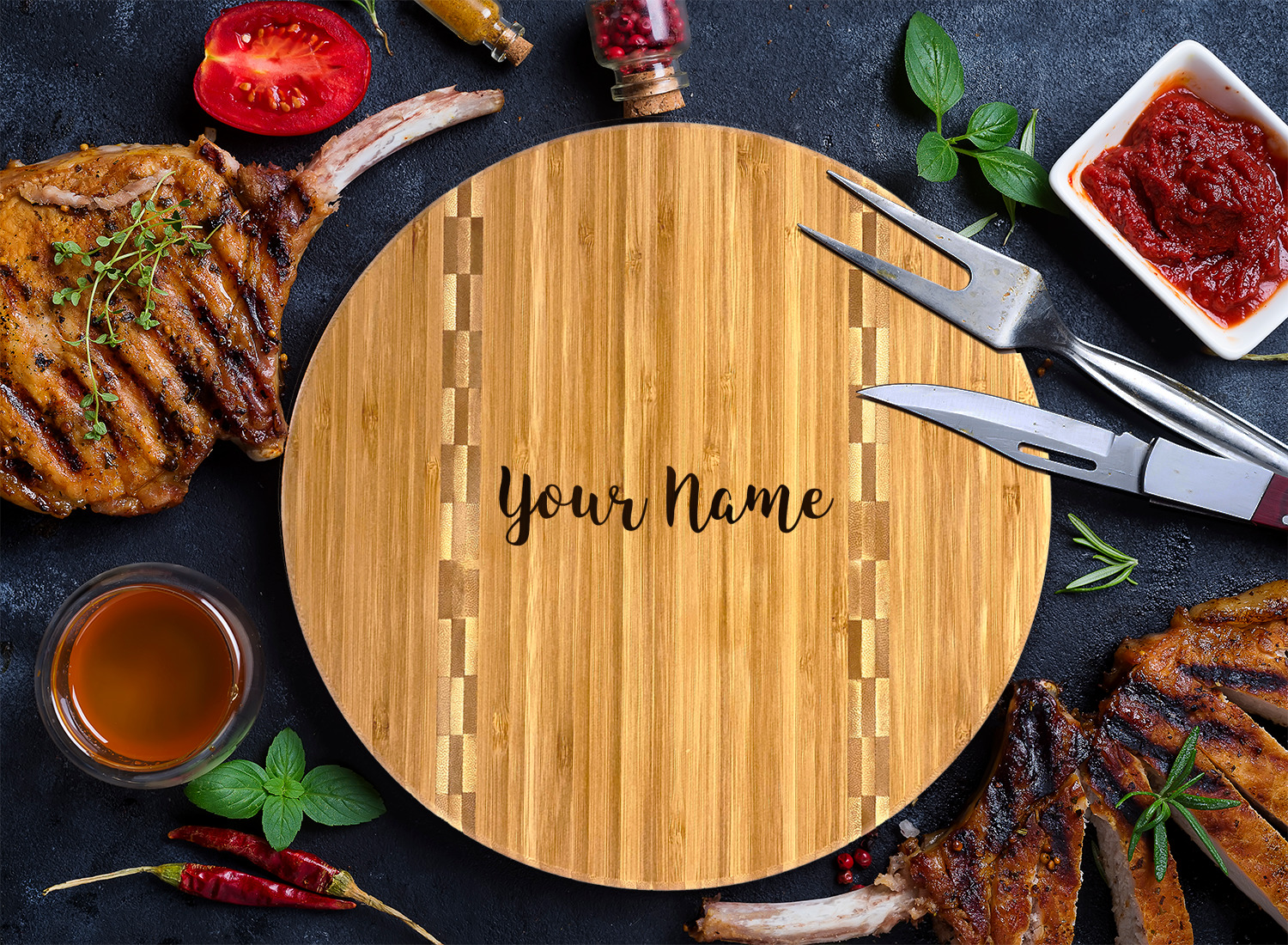 With the laser engraving the cutting board can be customized for that special personal touch. Great for cutting, chopping and dicing - this butcher block is a do it all kitchen tool anyone would love to have. The 11.5" diameter makes it a great size for cutting meats, cheese, fruits and vegetables. A quick hand wash and it is ready to use again.