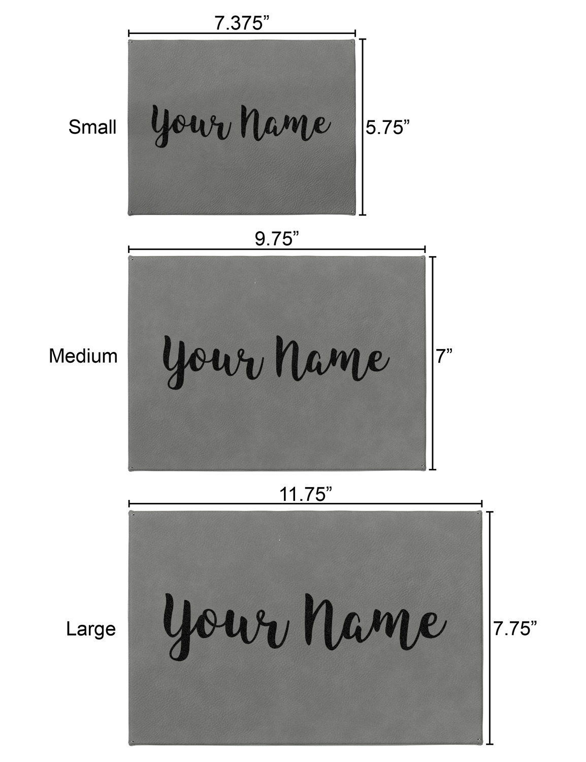 These gift boxes are available in 3 different sizes to accommodate various sized gifts. Available in gray as a neutral color for any occasion as well as to showcase your design boldly. Engraved with a laser this high quality paper board and faux leather gift box is unique and makes any gift stand out.