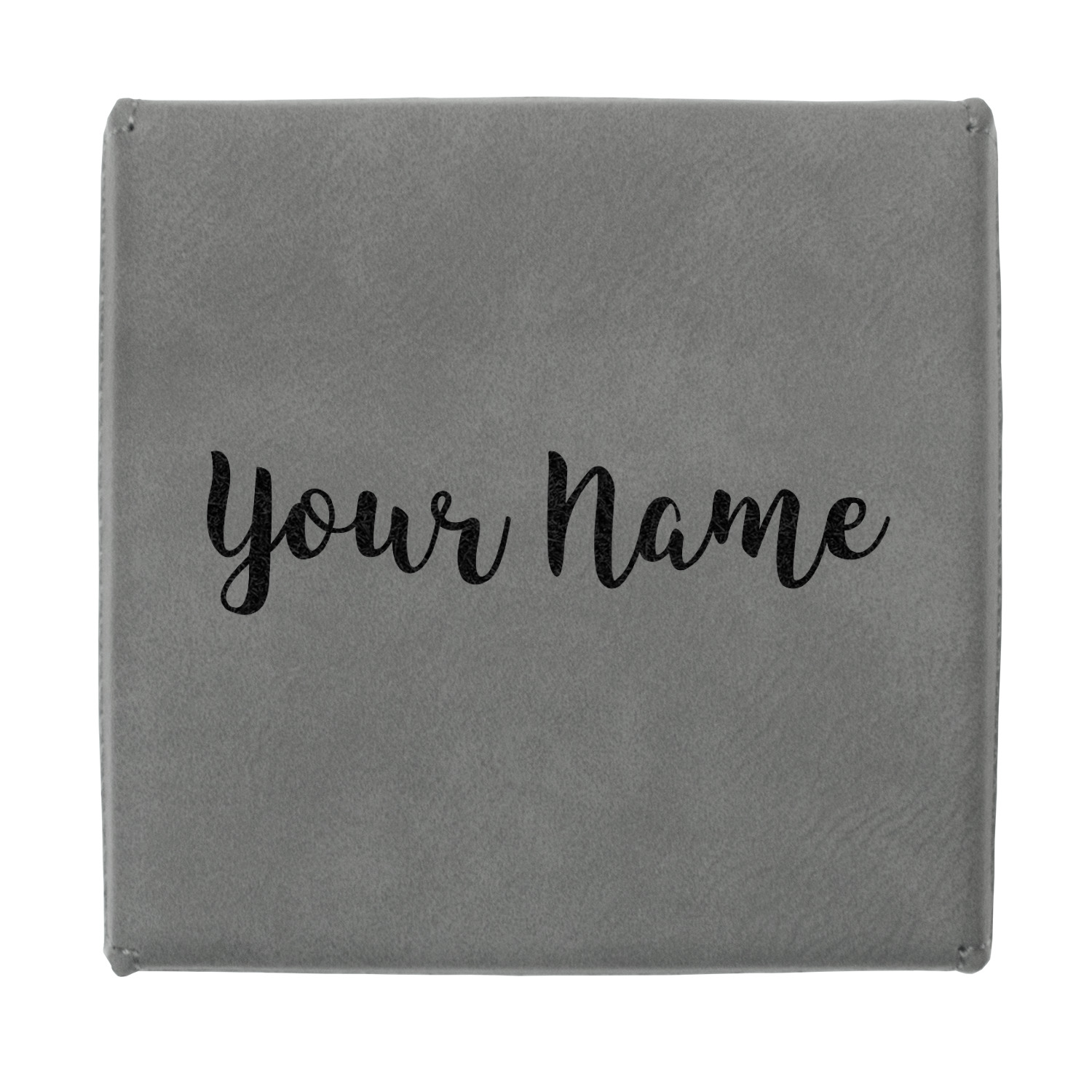 This jewelry gift box measures 3.5 inches long by 3.5 inches wide, and 1 inch deep. The box fits different sized jewelry items such as bracelets, necklaces, watches, earrings, rings and more. Engraved with a laser this high quality paper board and faux leather jewelry gift box is unique and makes any gift stand out.