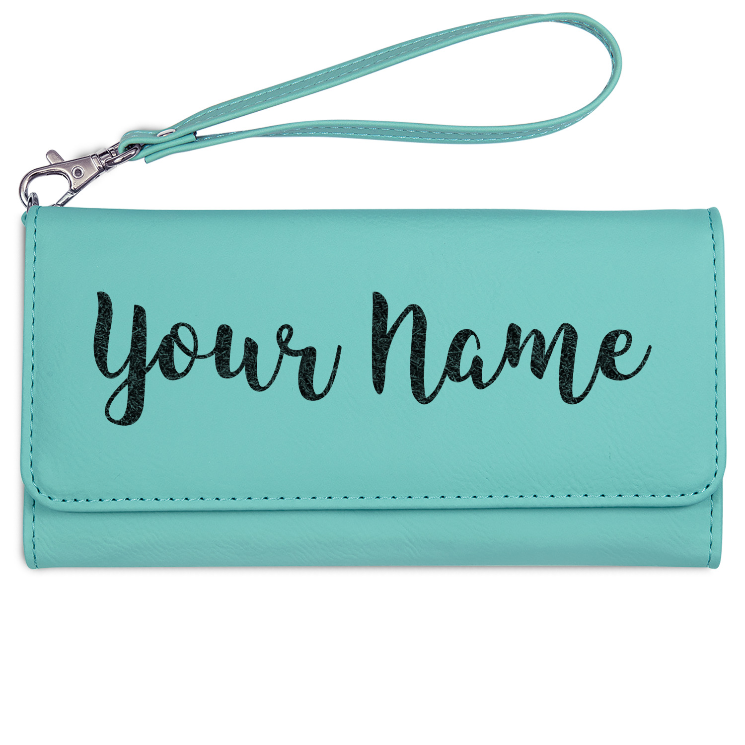 These personalized ladies leather wallets are available in 2 colors - rawhide / cognac and teal.