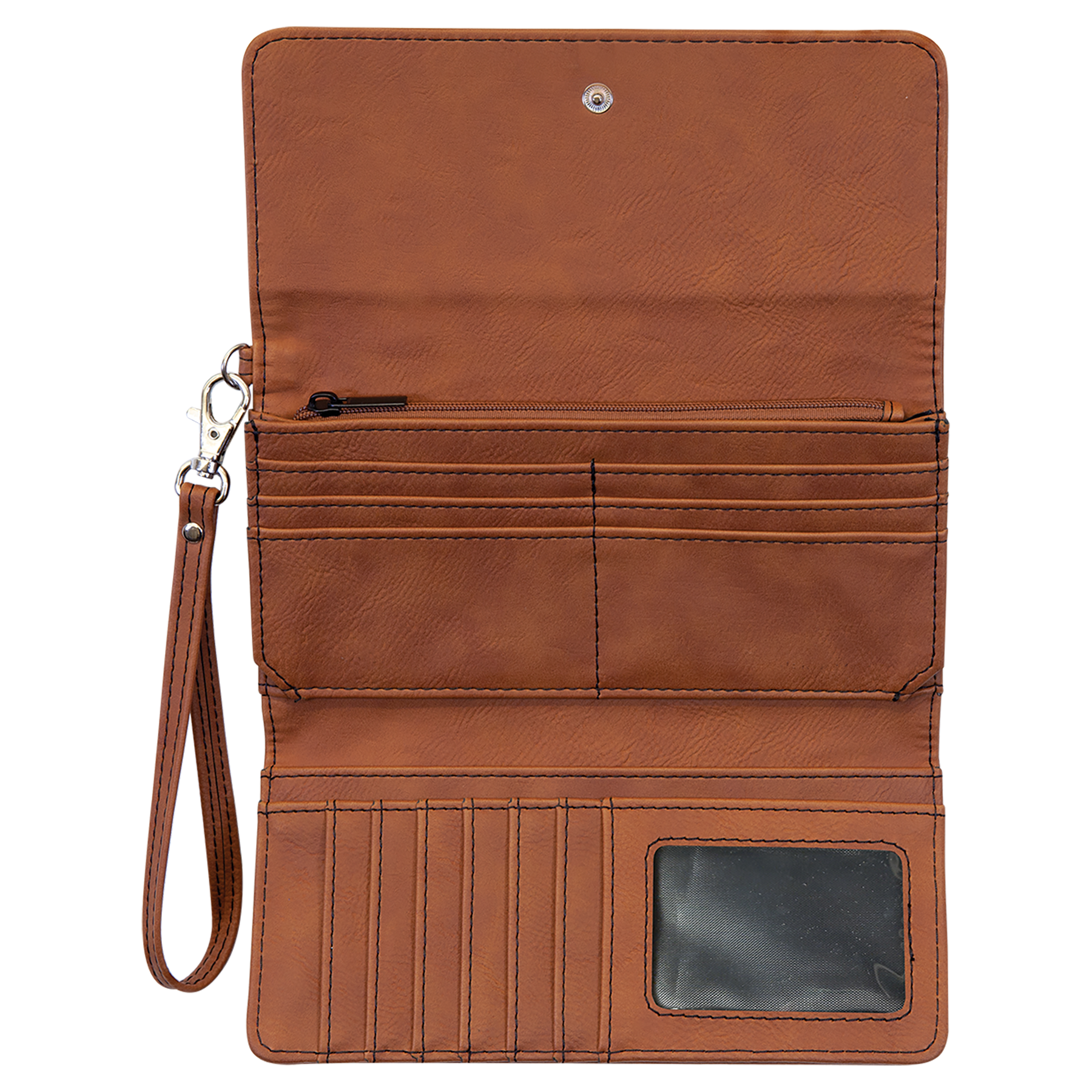 These beautiful leather wallets feature a detachable wrist strap, 1 slot for your ID, plus 12 slots for all your cards and features RFID blocking protection.