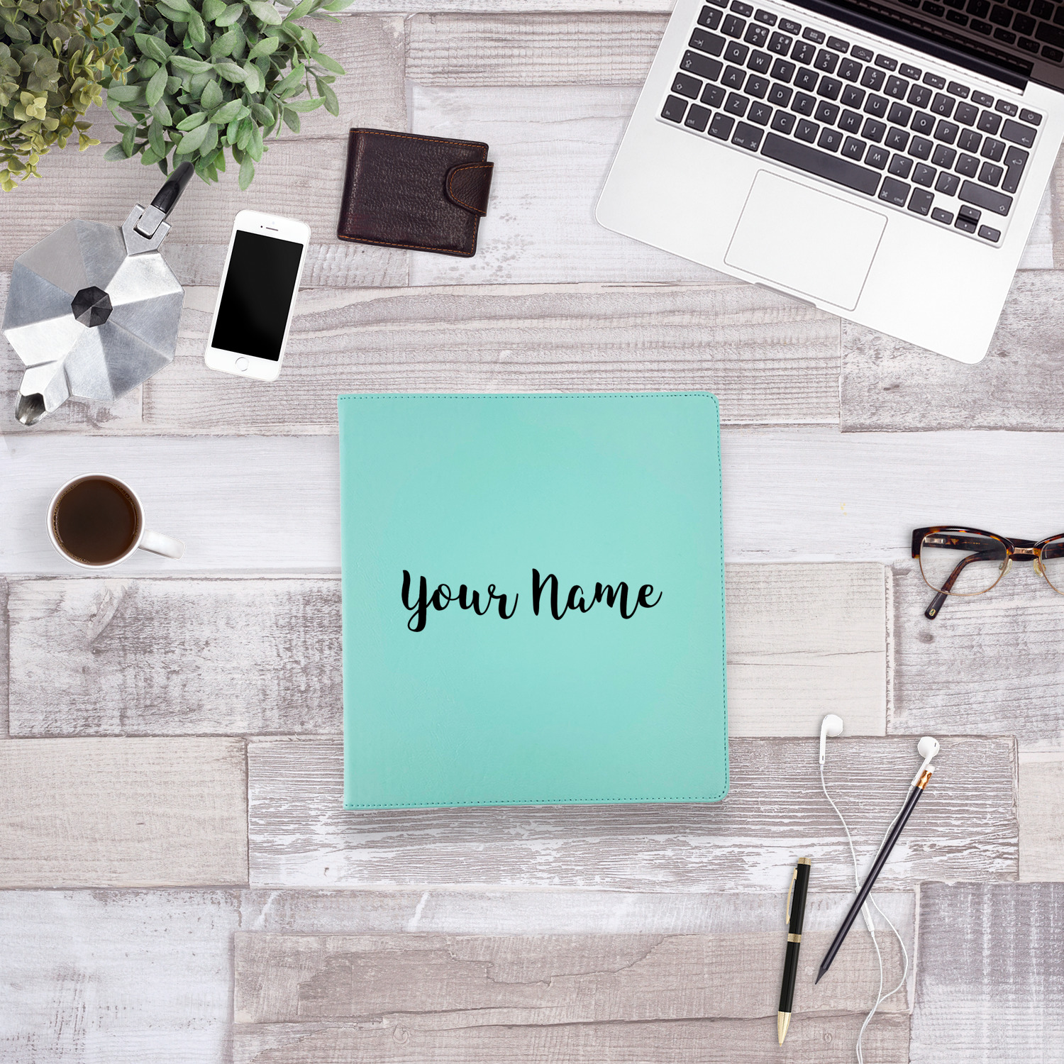 Made from a high quality faux leather covering, these binders are laser engrave with your choice of personalization. The 1" d-rings inside hold up to 175 sheets of standard 8.5" x 11" US Letter or notebook paper or 8.27" x 11.69" A4 size paper.