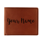 Made from a smooth brown leatherette material, these money clip wallets are the perfect accessory. They measure at approximately 4" x 2.75". On one side there is a money clip where you can slip in your cash. On the other side are three card slots for an ID and credit card or two. The money clip wallet will be laser engraved with your design on the side with the credit card slots. The graphic will come out as a black color.
