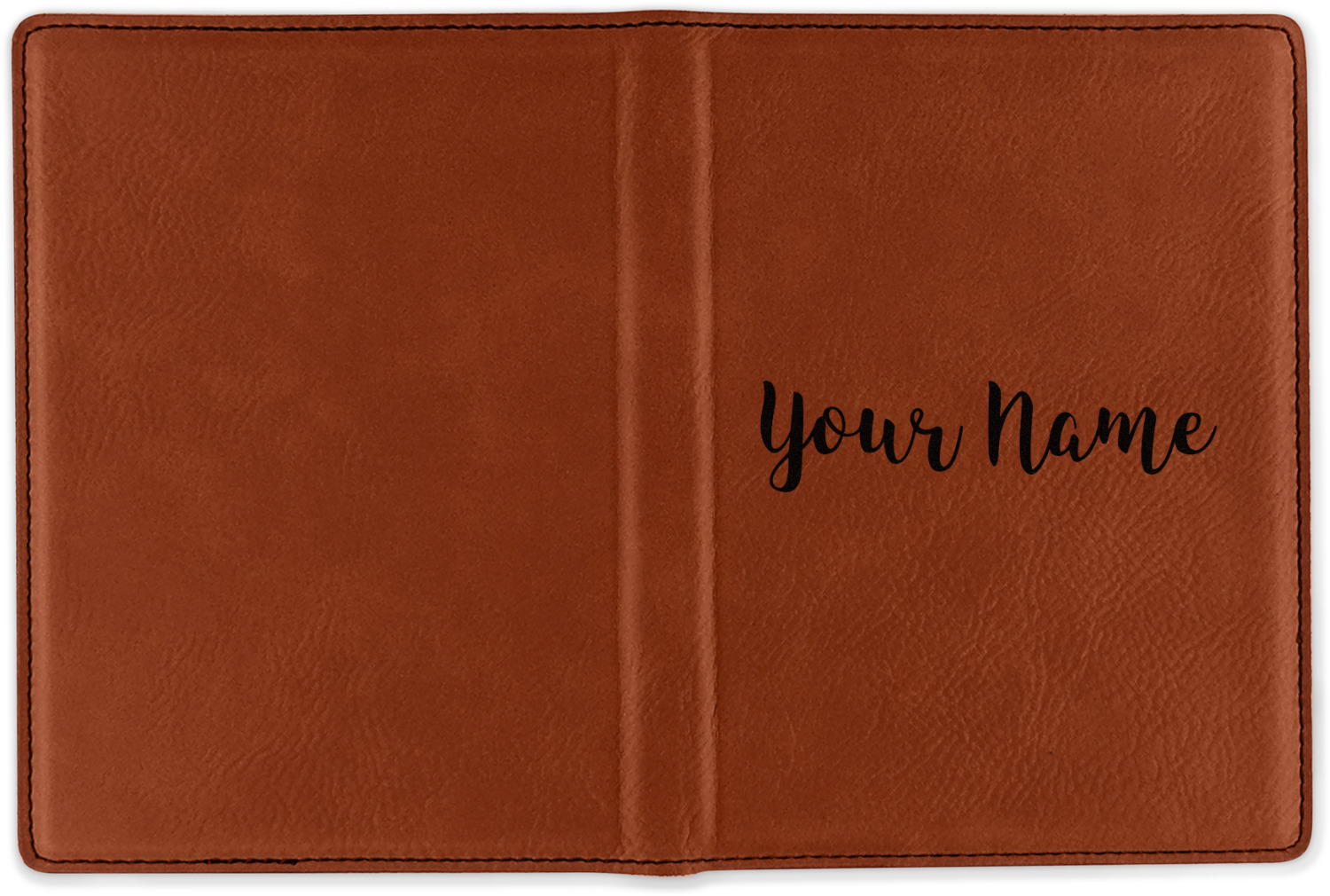 Although they are faux leather, these passport holders feel great in your hand. They are laser engraved either just on the front or the front and back. The image that is engraved onto your passport holder will be shades of black.