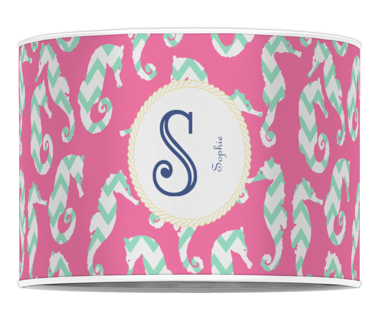 This sea horse design combines the beauty of seahorses with the fun loving chevron pattern. The design features mint, a bubble gum pink background and some gold colors, all of which can be customized to your favorite colors with just a few clicks!