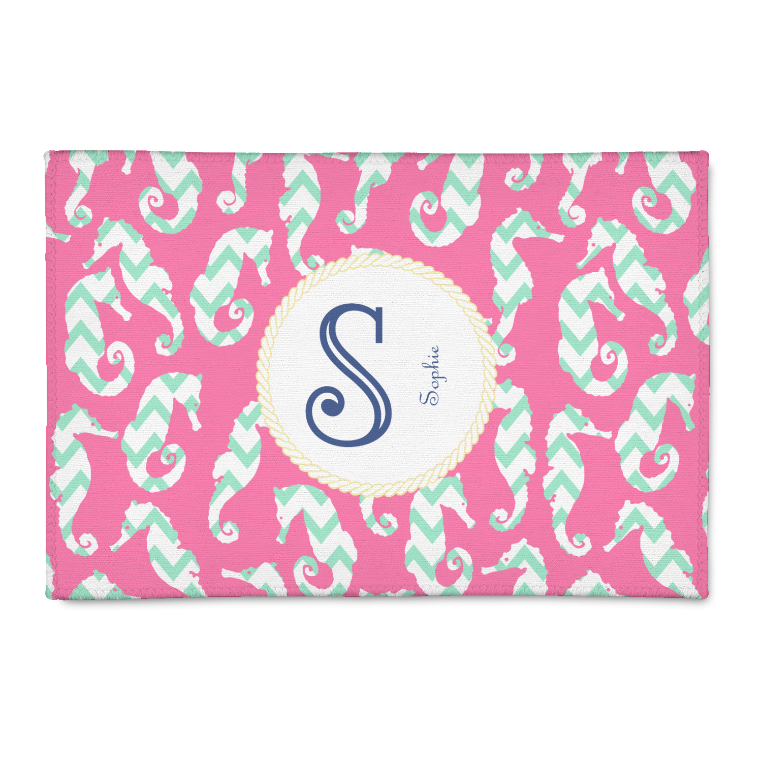 This sea horse design combines the beauty of seahorses with the fun loving chevron pattern. The design features mint, a bubble gum pink background and some gold colors, all of which can be customized to your favorite colors with just a few clicks!