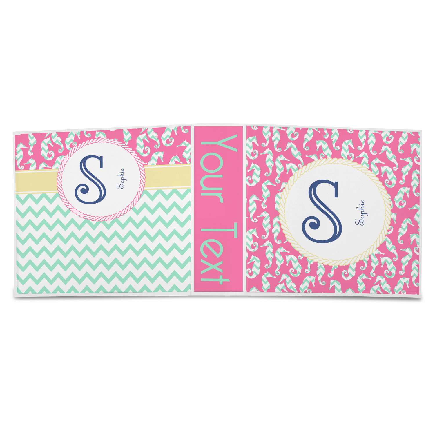This sea horse design combines the beauty of seahorses with the fun loving chevron pattern. The design features mint, a bubble gum pink background and some gold colors, all of which can be customized to your favorite colors with just a few clicks!