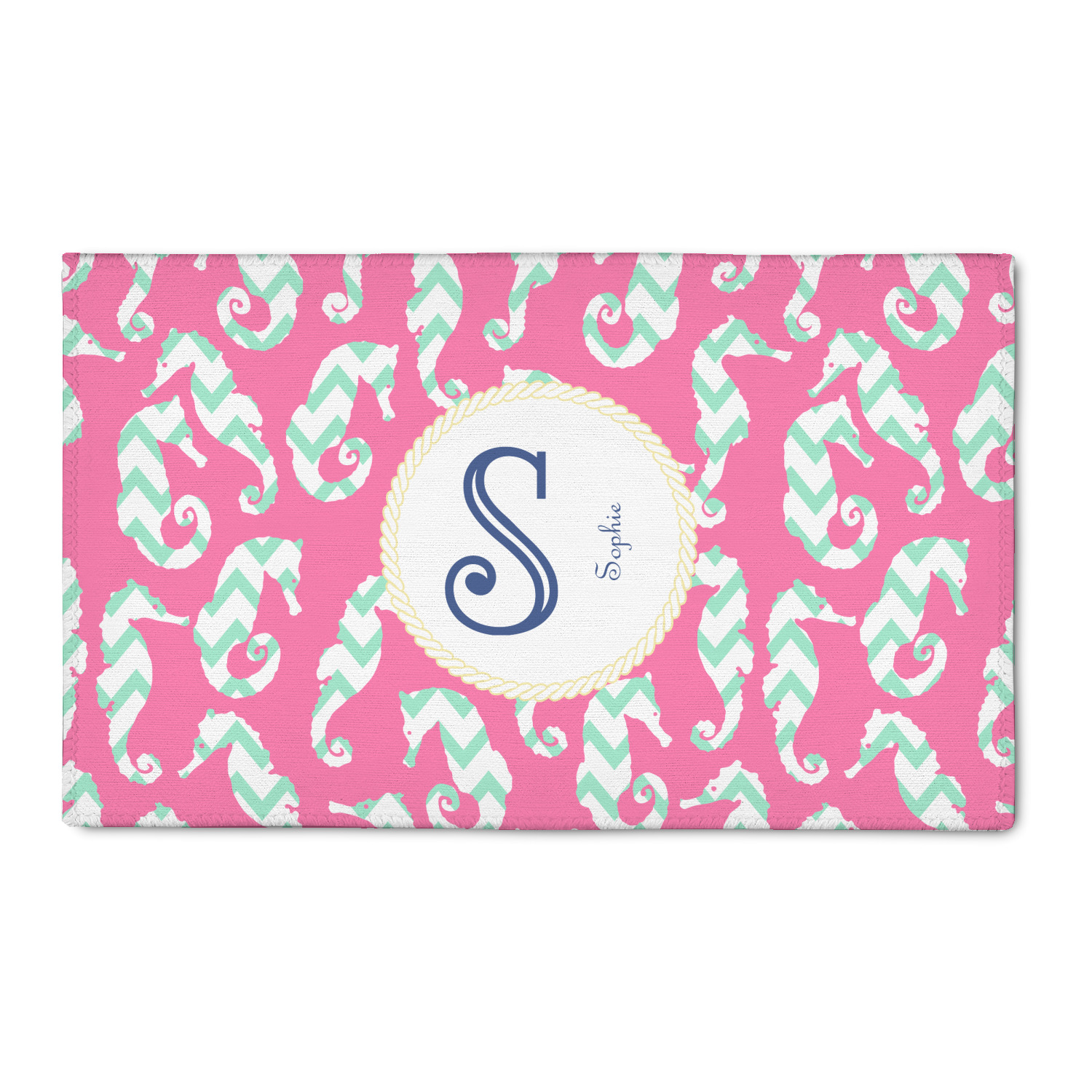 This sea horse design combines the beauty of seahorses with the fun loving chevron pattern. The design features mint, a bubble gum pink background and some gold colors, all of which can be customized to your favorite colors with just a few clicks!