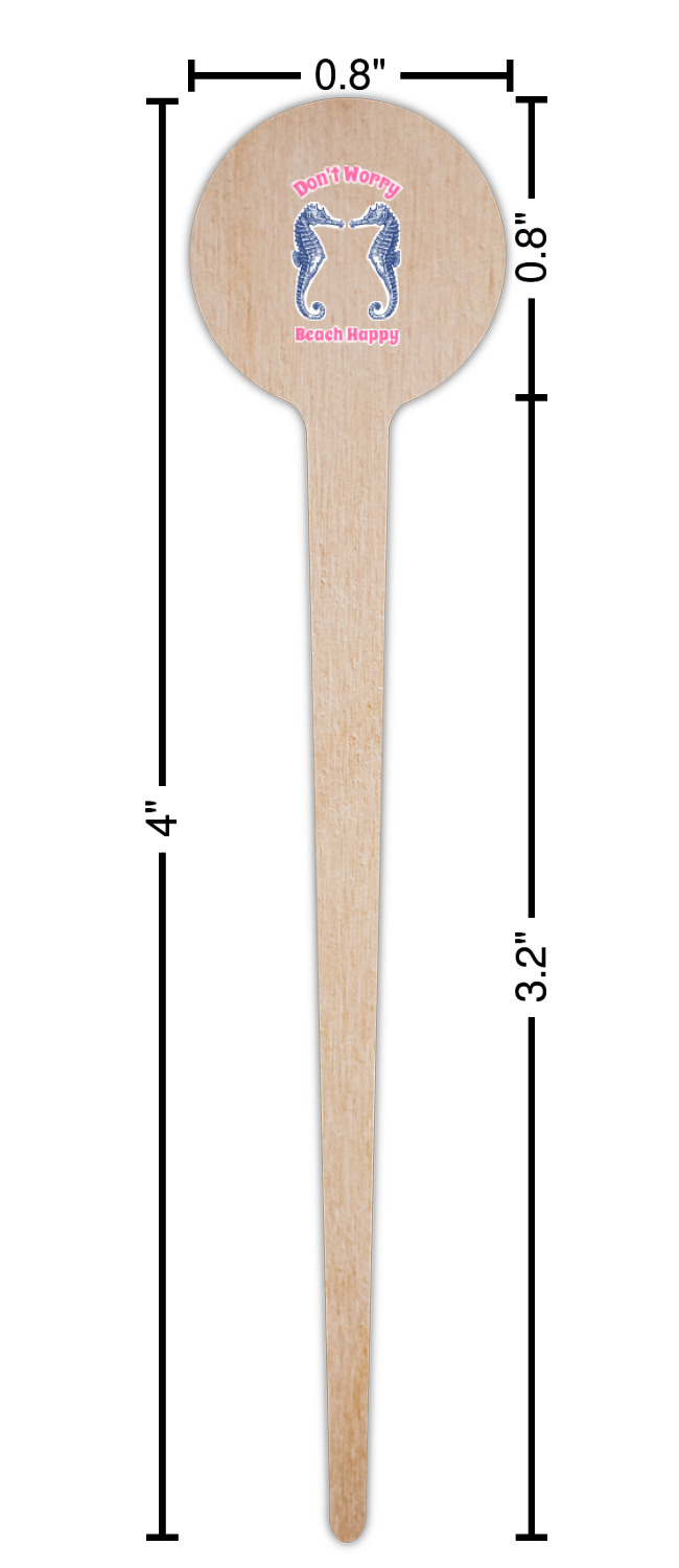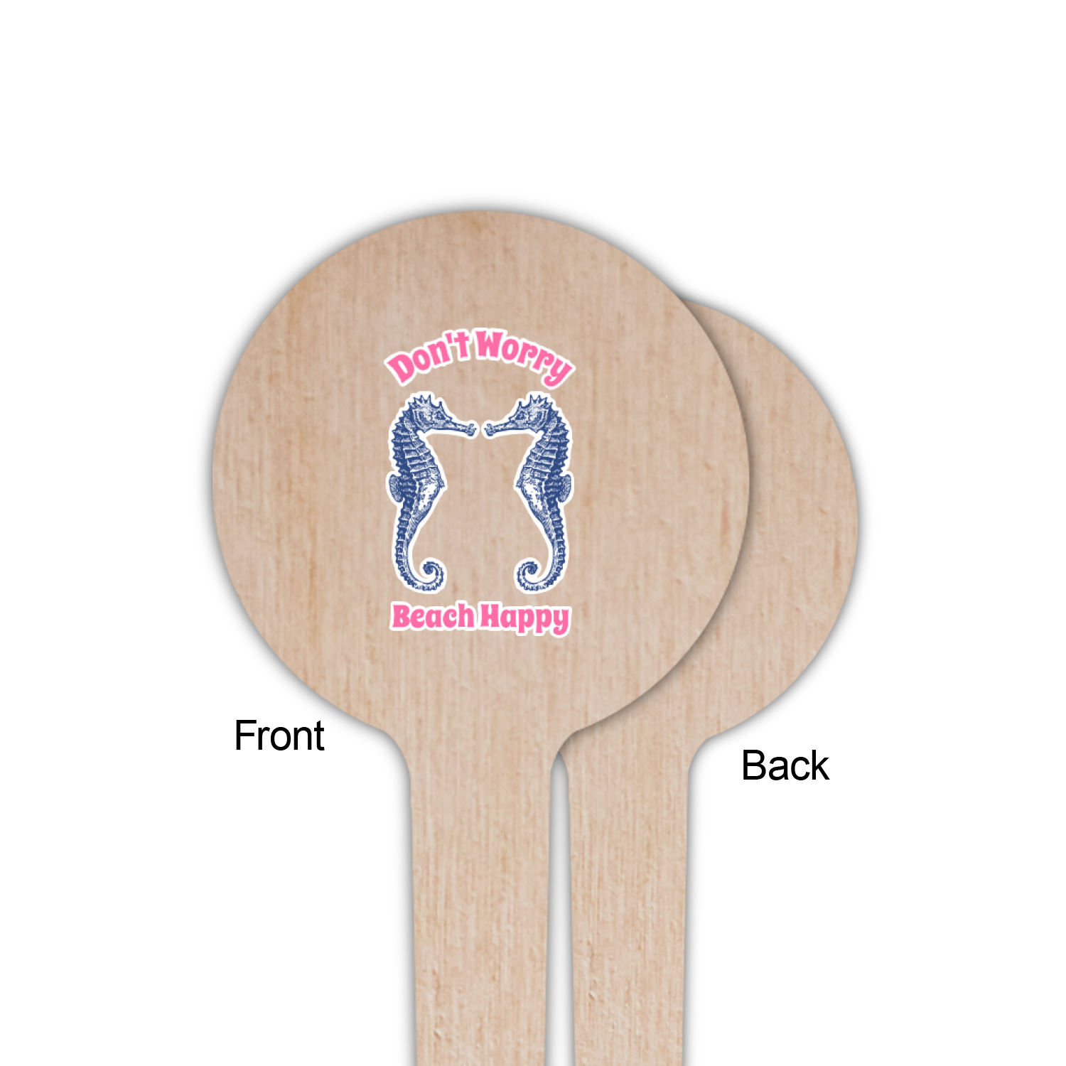 Coastal / Beach Style Designs for 4" Round Wooden Food Picks - Single-Sided