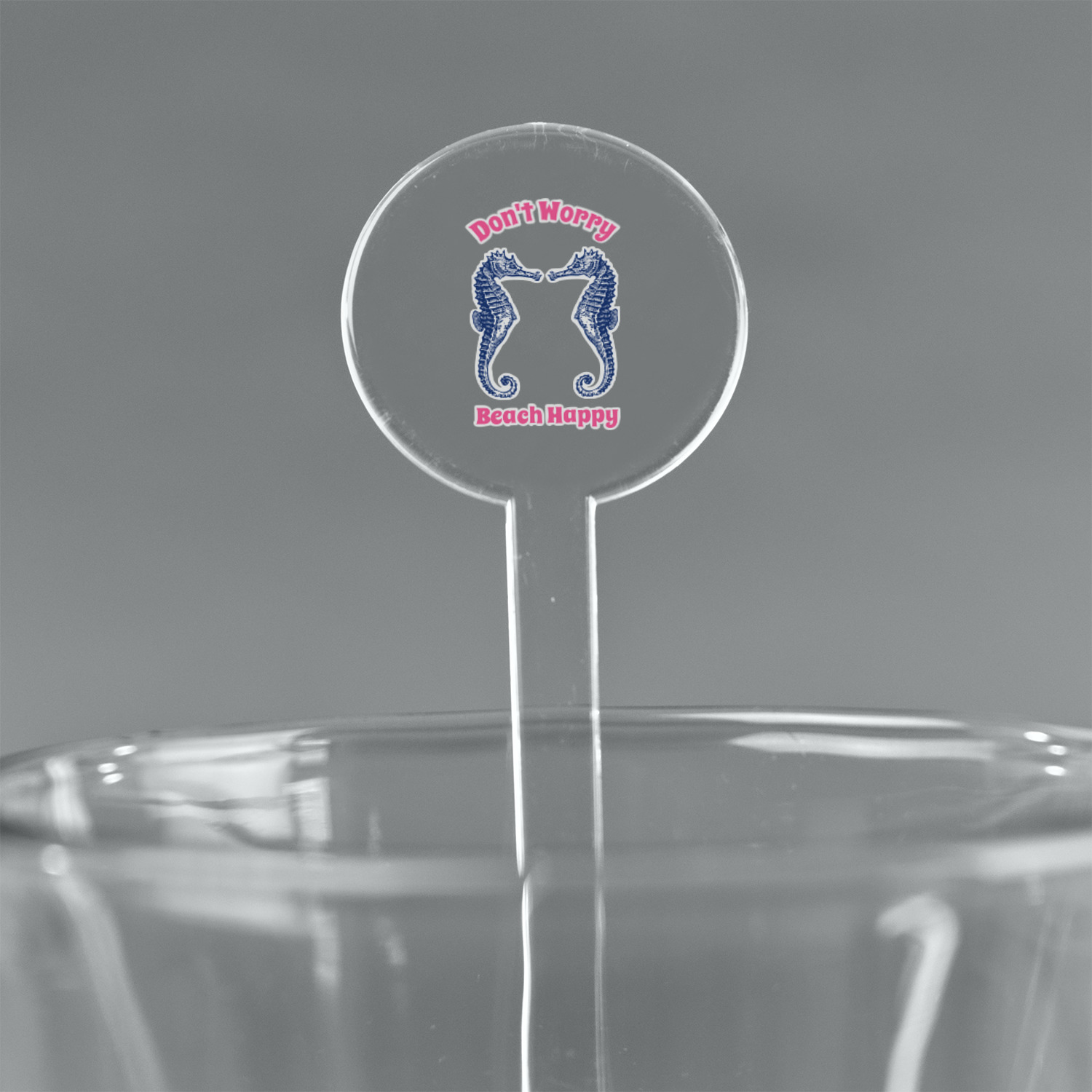 Coastal / Beach Style Designs for 5.5" Round Plastic Stir Sticks - Clear