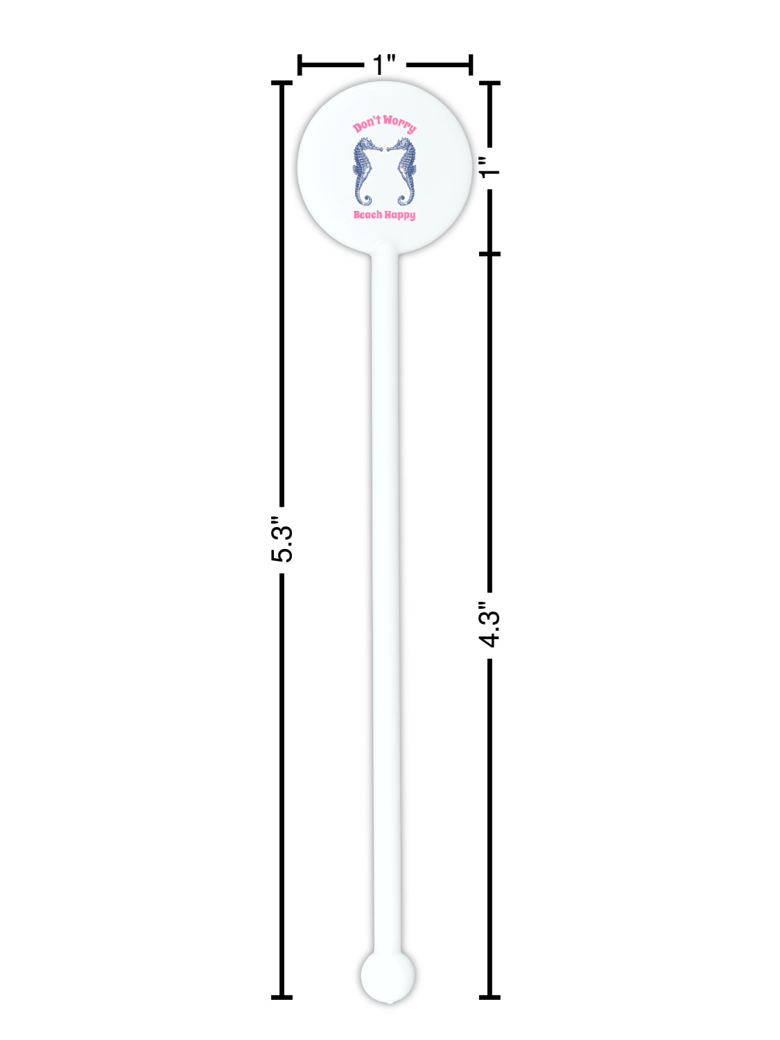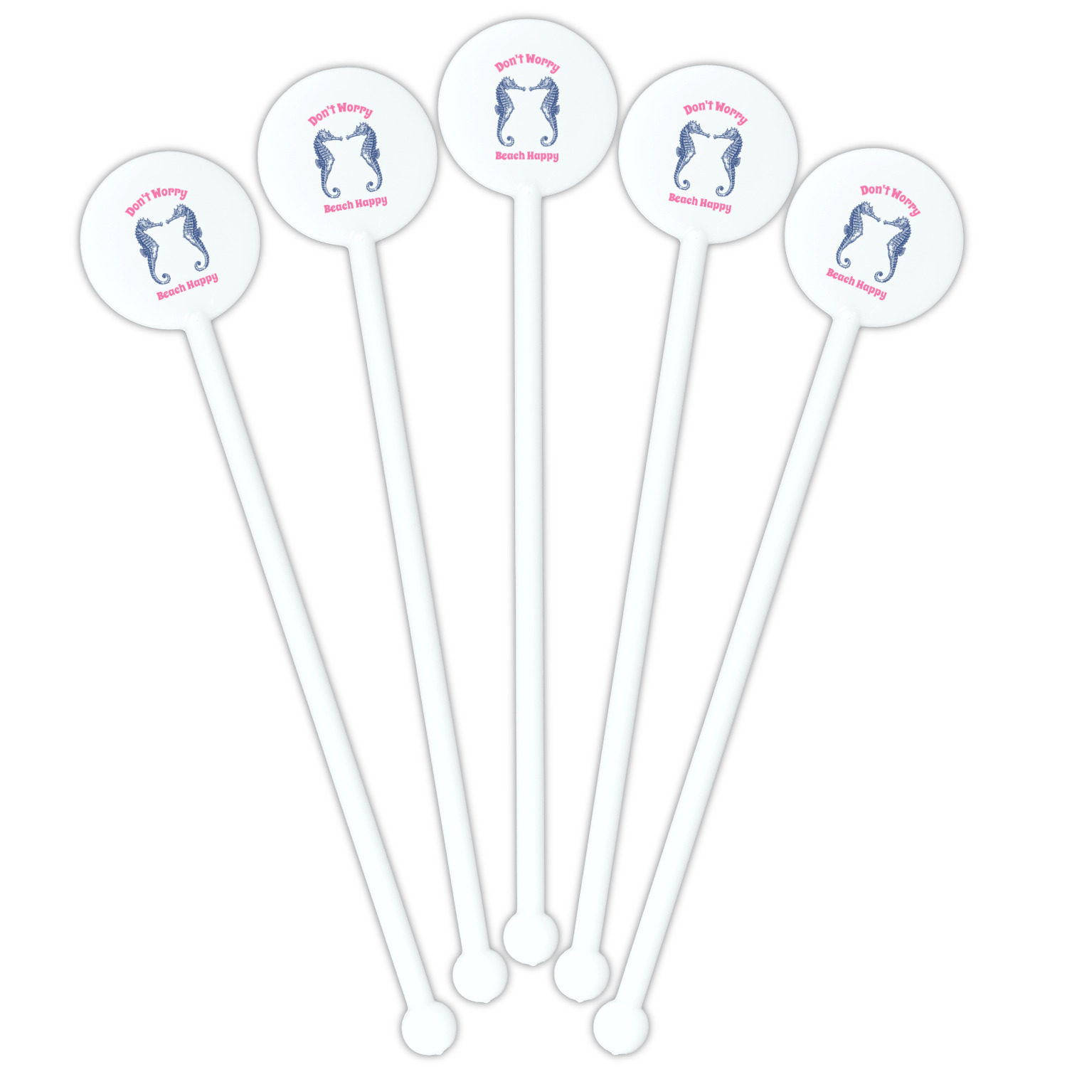 Coastal / Beach Style Designs for 5.5" Round Plastic Stir Sticks - White - Single-Sided