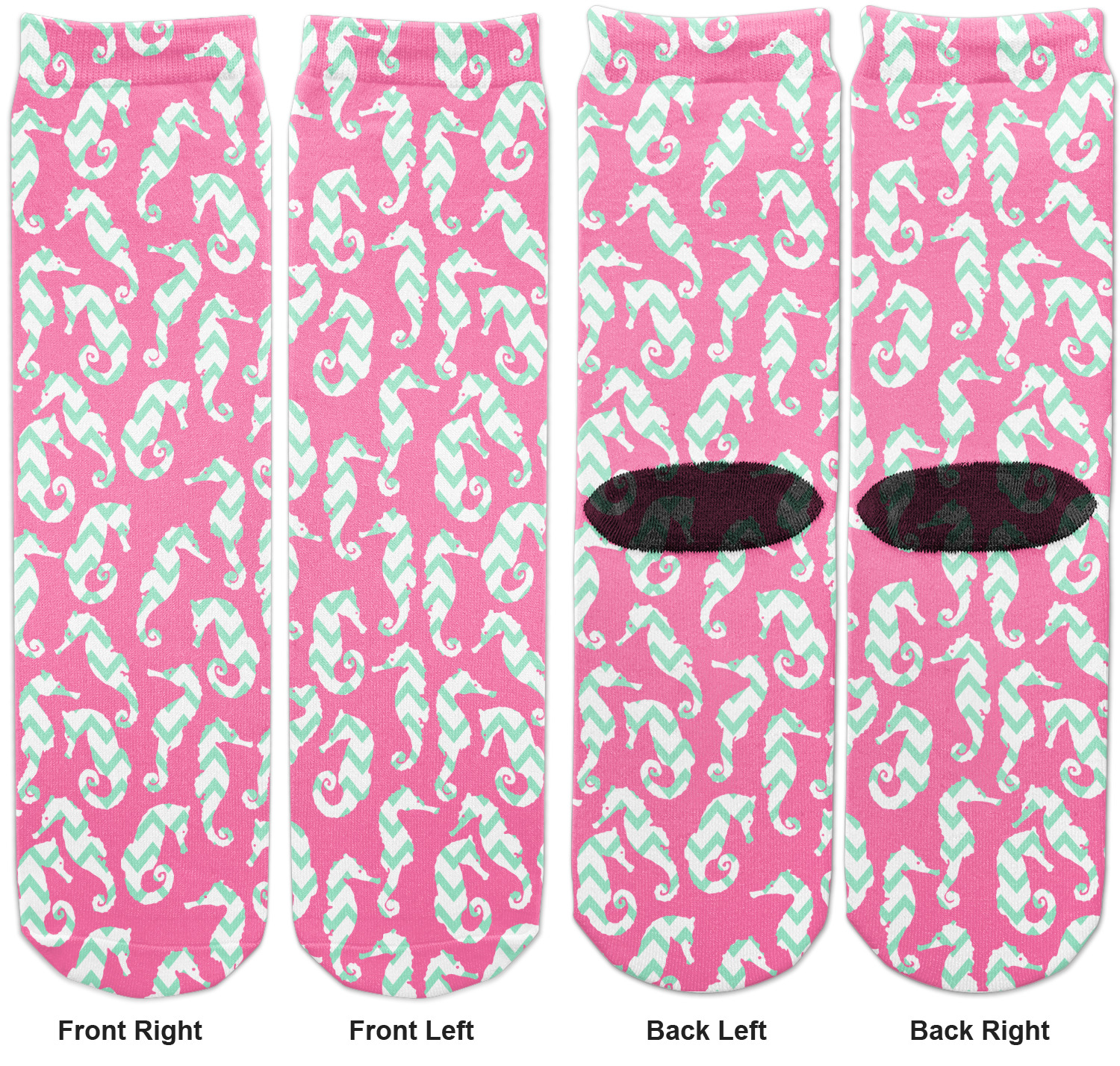 This sea horse design combines the beauty of seahorses with the fun loving chevron pattern. The design features mint, a bubble gum pink background and some gold colors, all of which can be customized to your favorite colors with just a few clicks!