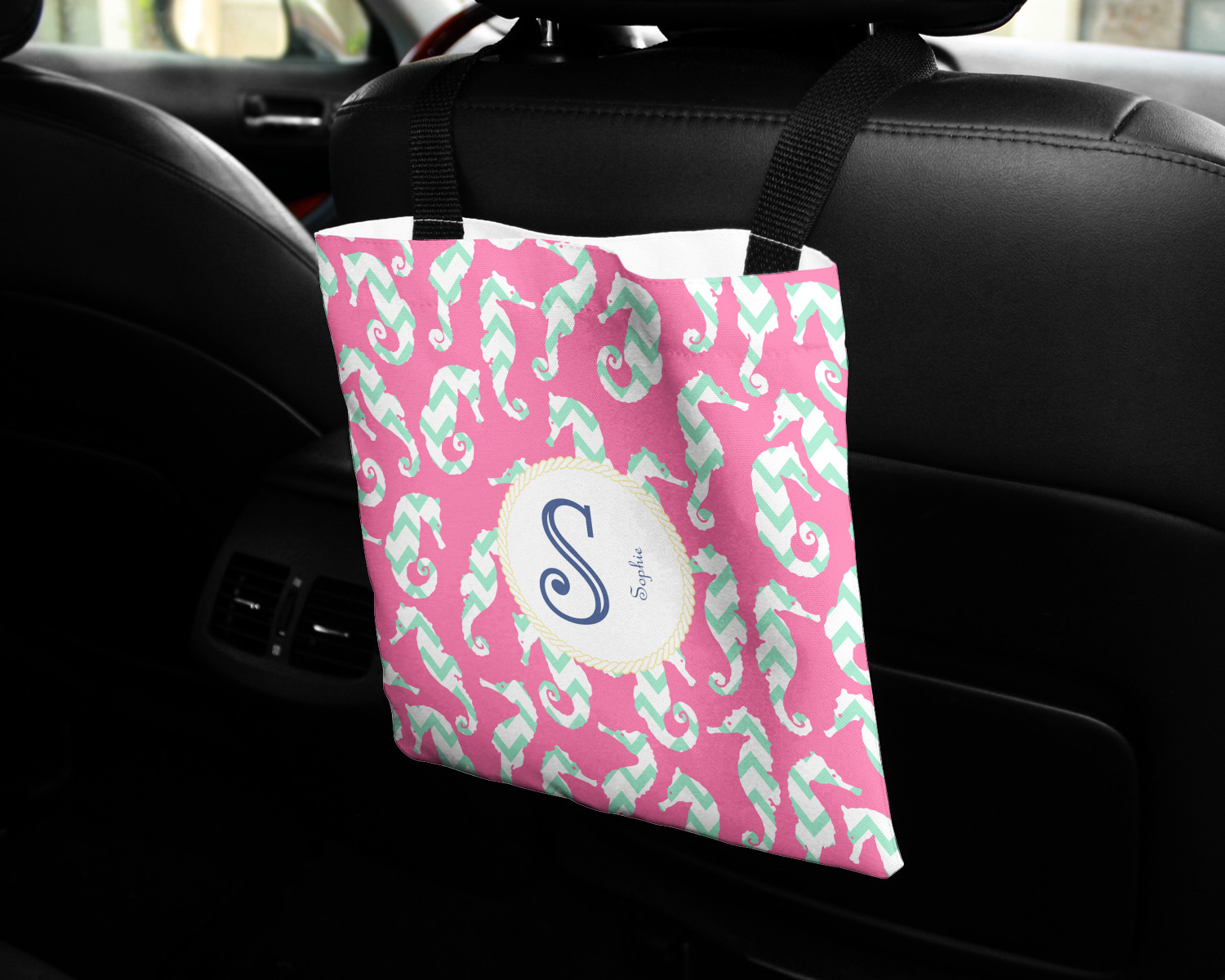 These car back seat organizers are sturdy tote-like bags, fabricated from a robust polyester, and features a single handle on the back side. The strap features an attachable velcro for easy attachment to headrests, grocery carts, car seats, and more. Simply undo the velcro, loop the strap around the headrest, reattach the velcro, and let the organizer hang from the front seat. These car organizers are the perfect means of increasing your backseat's legroom, while storing multiple items in one place for better accessibility. Each car back seat organizer measures at 10 by 10 inches, and features your personalized design printed across its front and back.