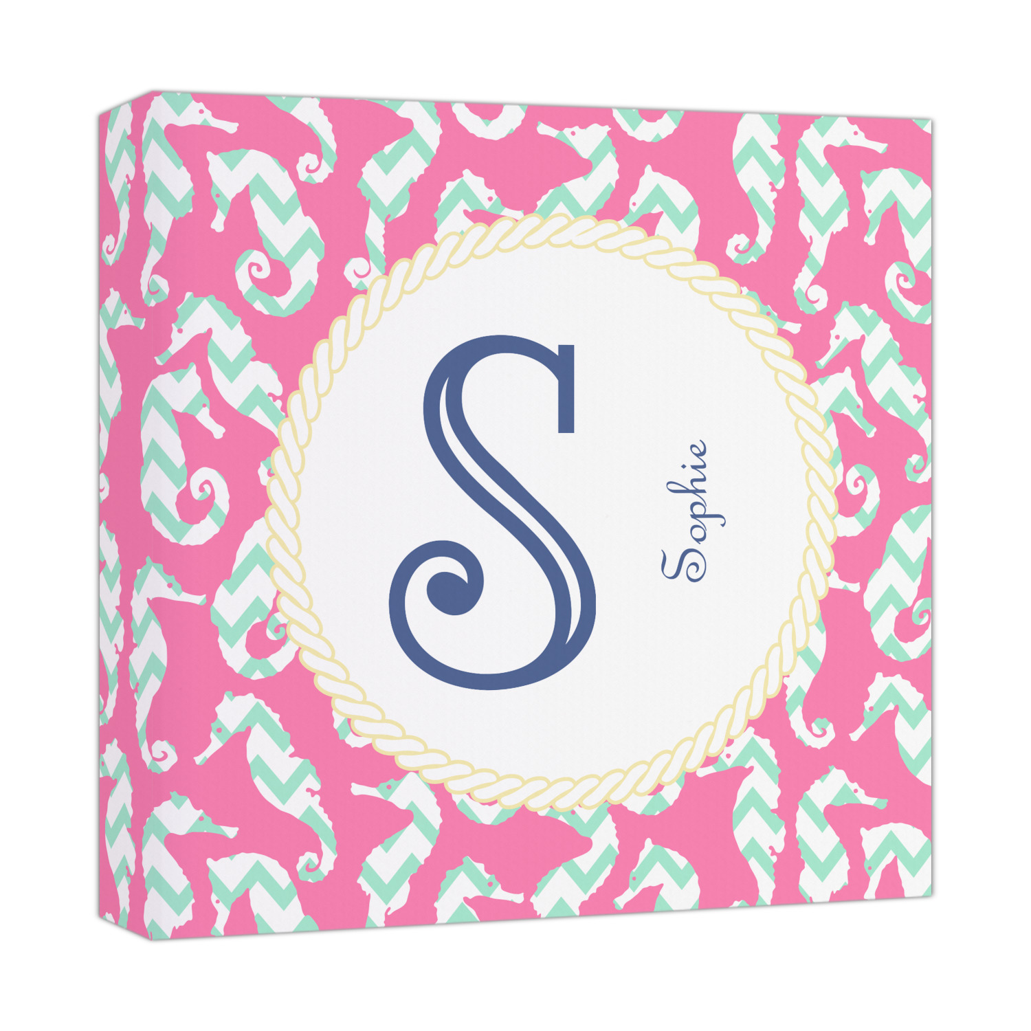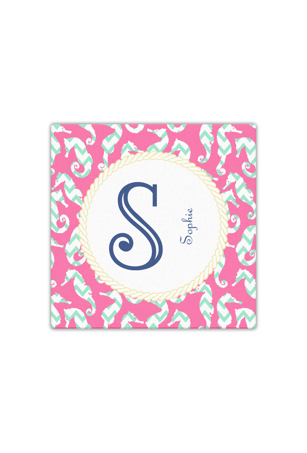 This sea horse design combines the beauty of seahorses with the fun loving chevron pattern. The design features mint, a bubble gum pink background and some gold colors, all of which can be customized to your favorite colors with just a few clicks!