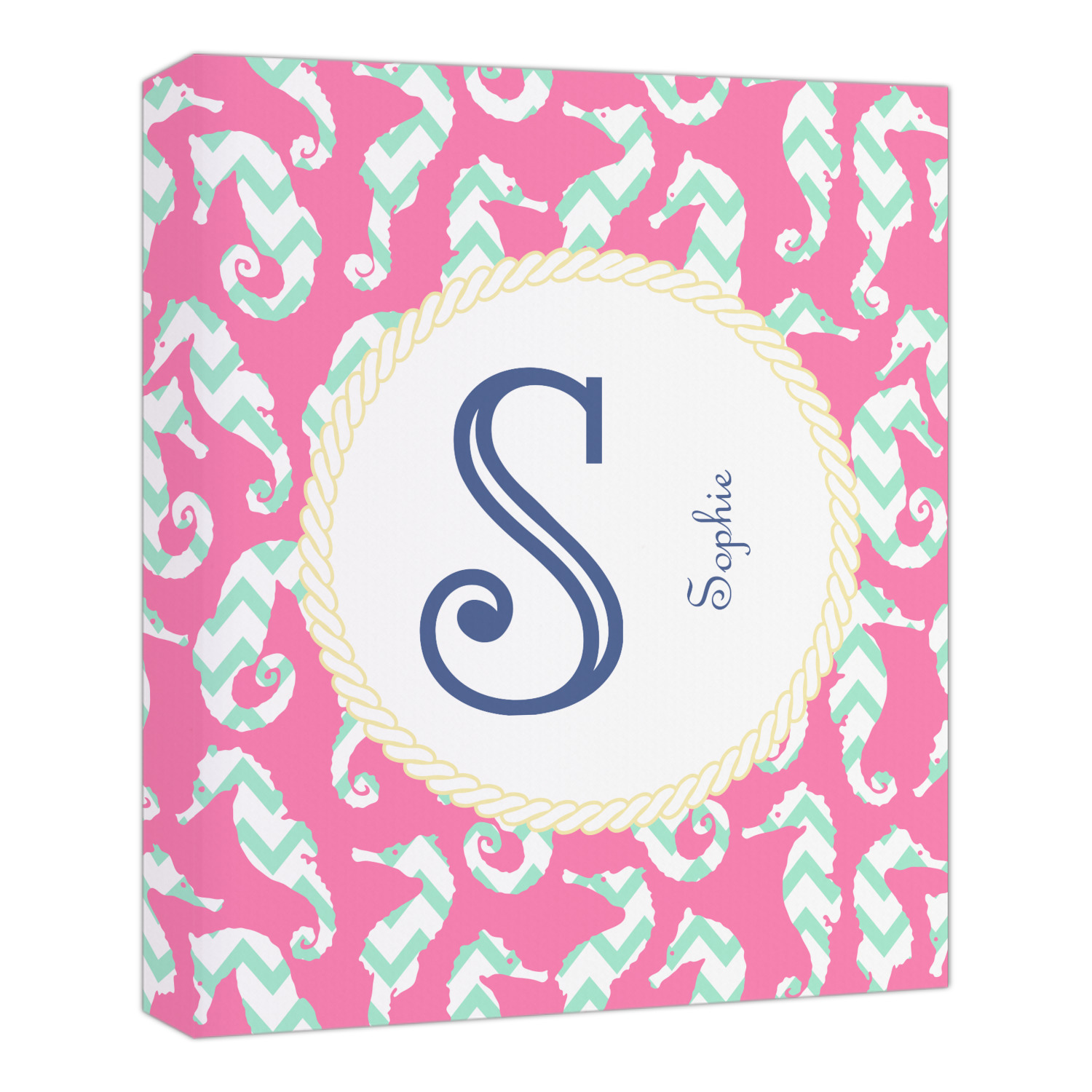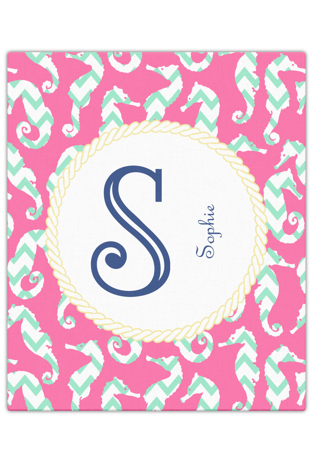 This sea horse design combines the beauty of seahorses with the fun loving chevron pattern. The design features mint, a bubble gum pink background and some gold colors, all of which can be customized to your favorite colors with just a few clicks!