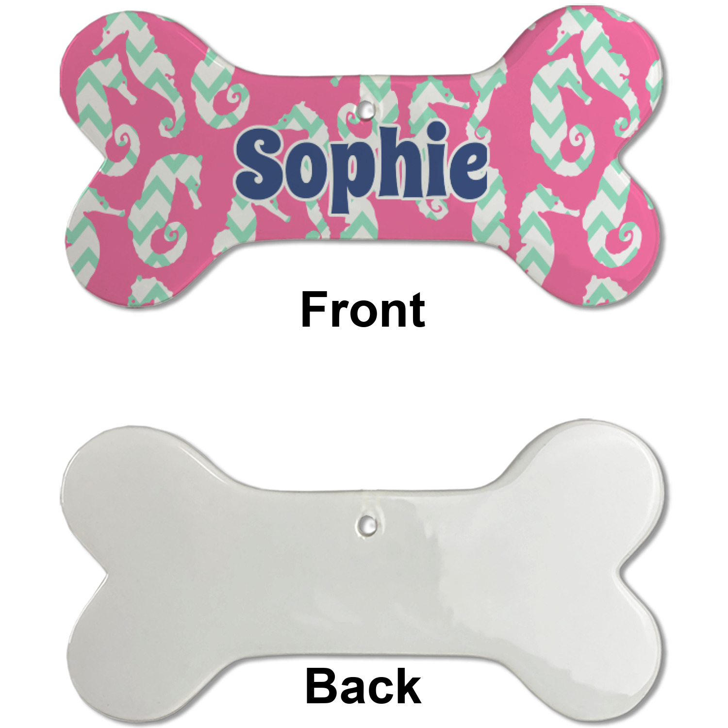 Our dog Christmas ornaments are a ceramic material with a bone-shaped structure hung horizontally. We offer two printing styles to personalize your furry friend's ornament! Choose a one-sided printing, perfect for wall decor, memorial accessory, or doghouse nameplate! Create a double-sided ornament perfect for adorning the Christmas tree. Each dog bone ornament is approximately 4.75" x 2.25" and is printed here in the USA.