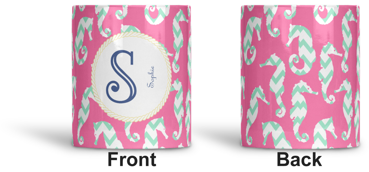 This sea horse design combines the beauty of seahorses with the fun loving chevron pattern. The design features mint, a bubble gum pink background and some gold colors, all of which can be customized to your favorite colors with just a few clicks!