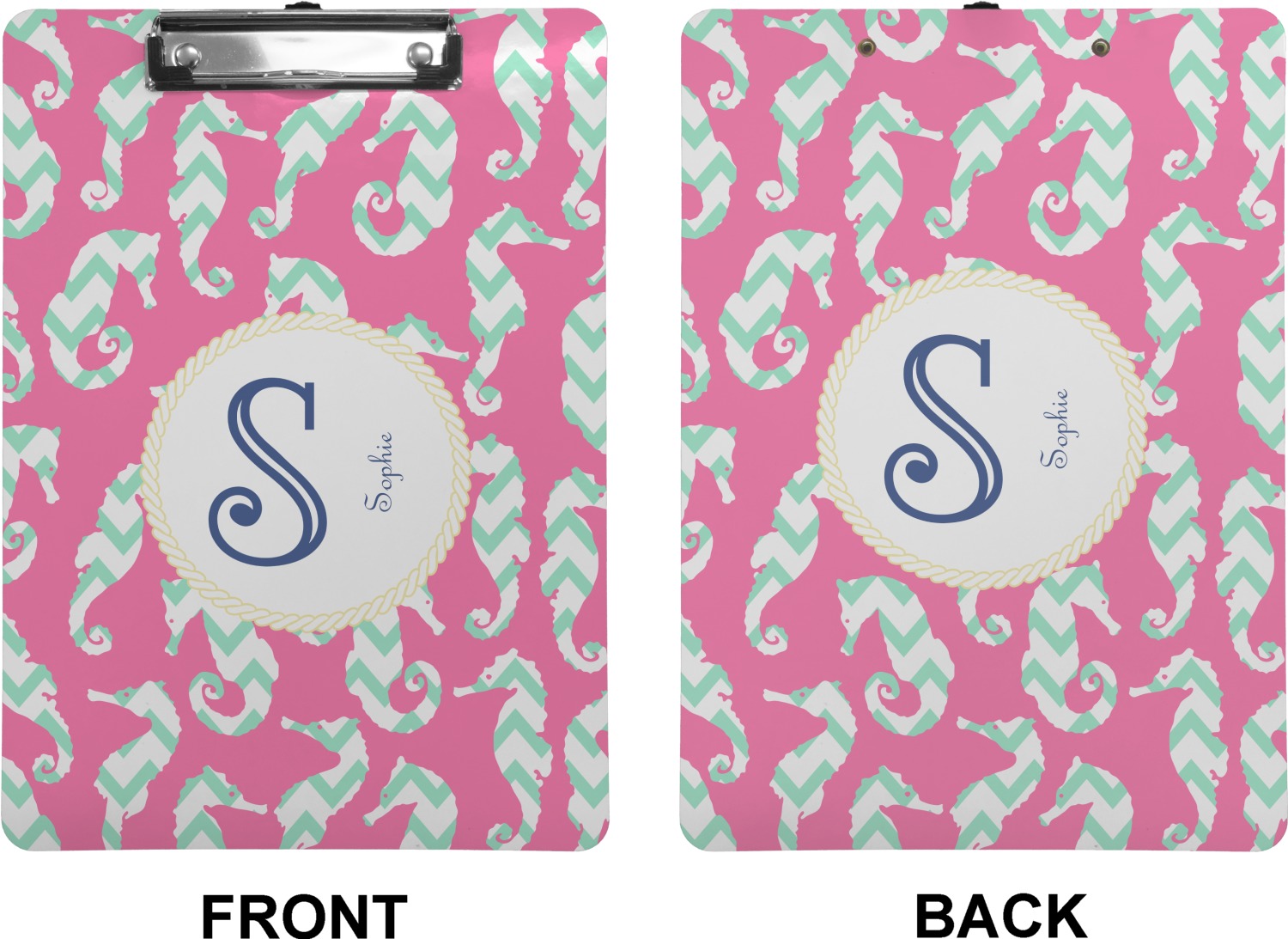 These custom clipboards are made from a strong hardboard and are coated with a glossy finish that accentuates the colors of your design. Alongside a retractable hook at its top, these decorative clipboards also feature sturdy clips to secure several sheets of paper. We sell these clipboards in two separate sizes. Our letter size measures at 12.5" L x 9" W, while our legal clipboard is approximately 15.5" L x 9" W. On both models, your personalization is printed on both sides of this clipboard and can be customized individually.