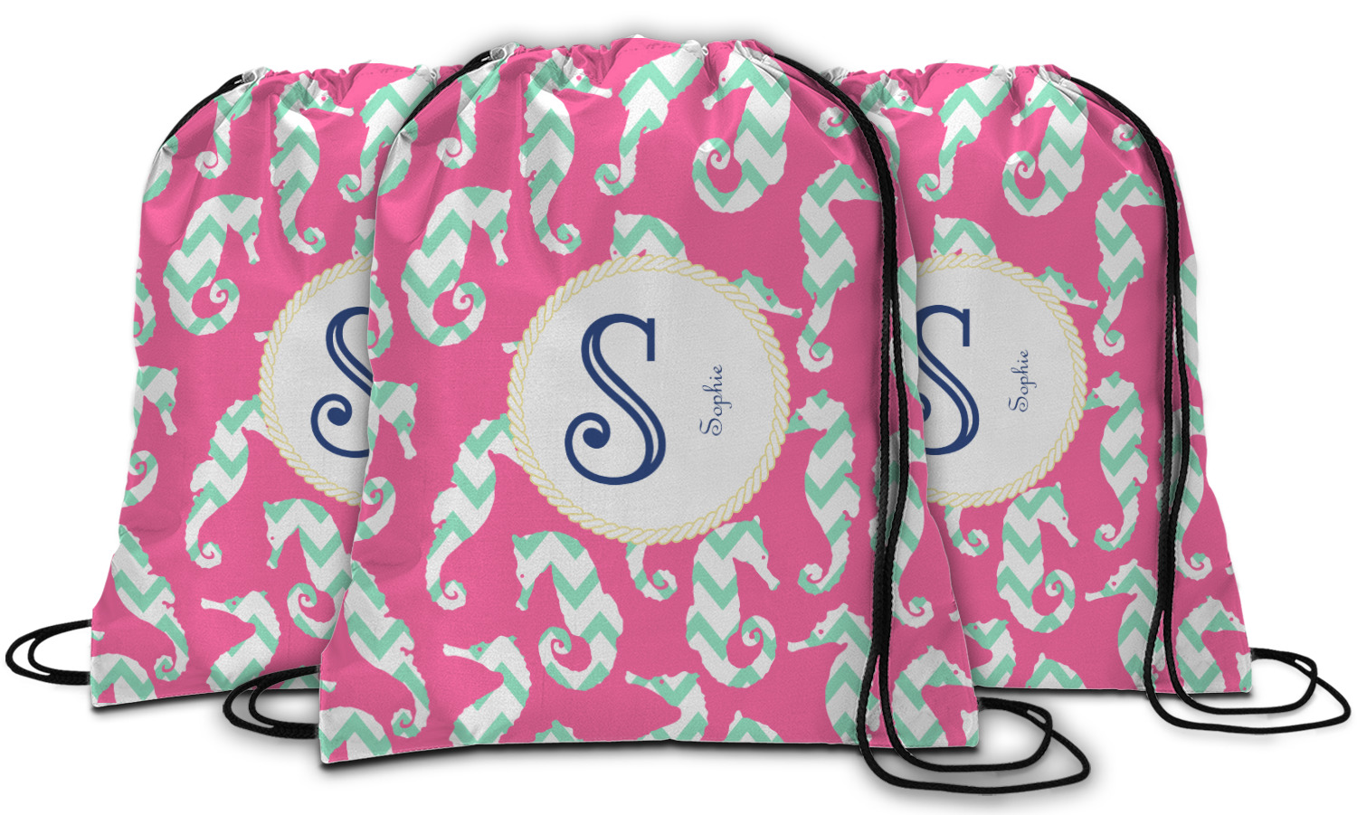 Our drawstring backpacks are custom made for you here in the USA. We offer a great selection of cinch bags and it is your choice to personalize them with the text of your choice, in the format of your choice i.e. monogram, name, initial, name & initial. We offer many different patterns and prints; and many of the patterns are available in 45 different colors.