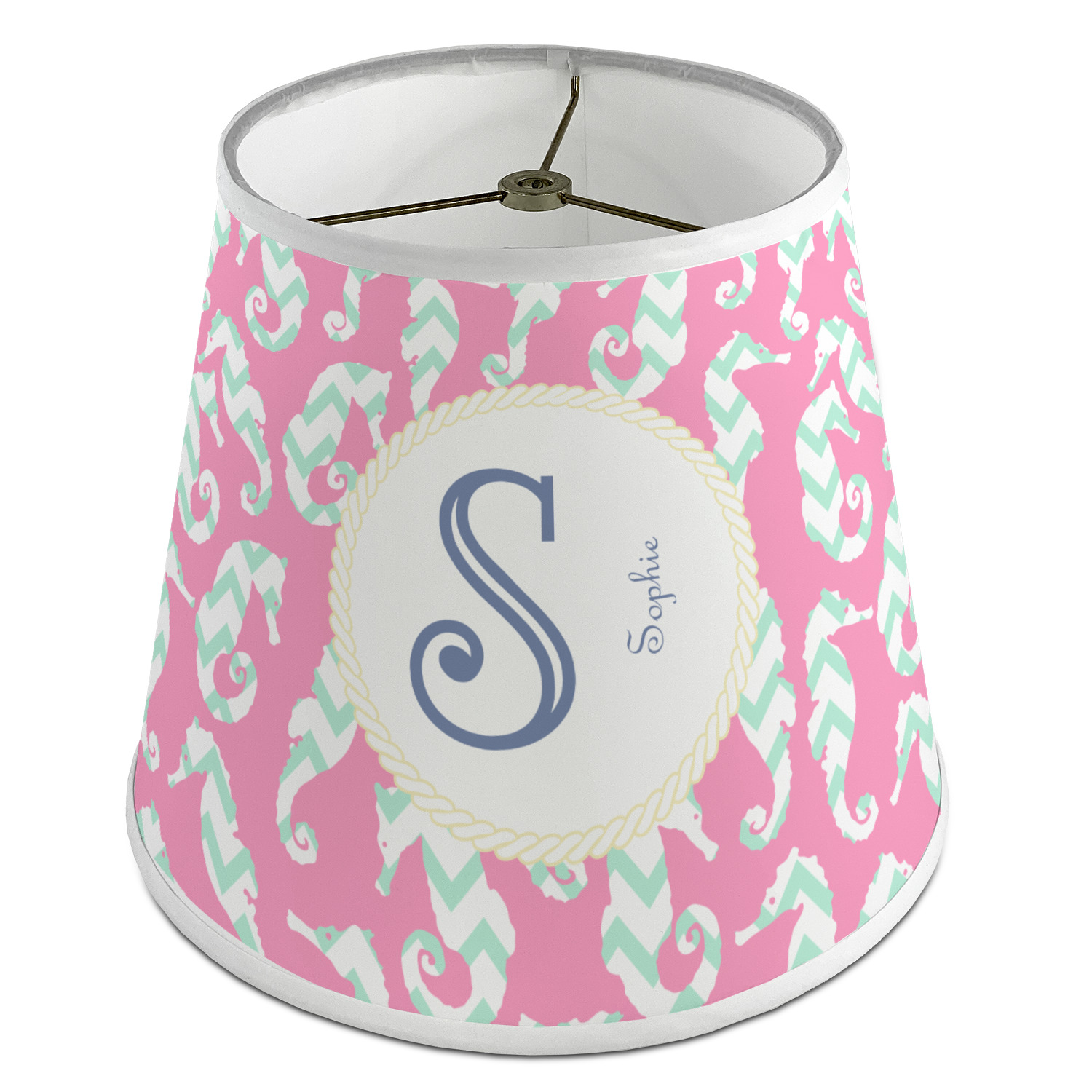 This sea horse design combines the beauty of seahorses with the fun loving chevron pattern. The design features mint, a bubble gum pink background and some gold colors, all of which can be customized to your favorite colors with just a few clicks!