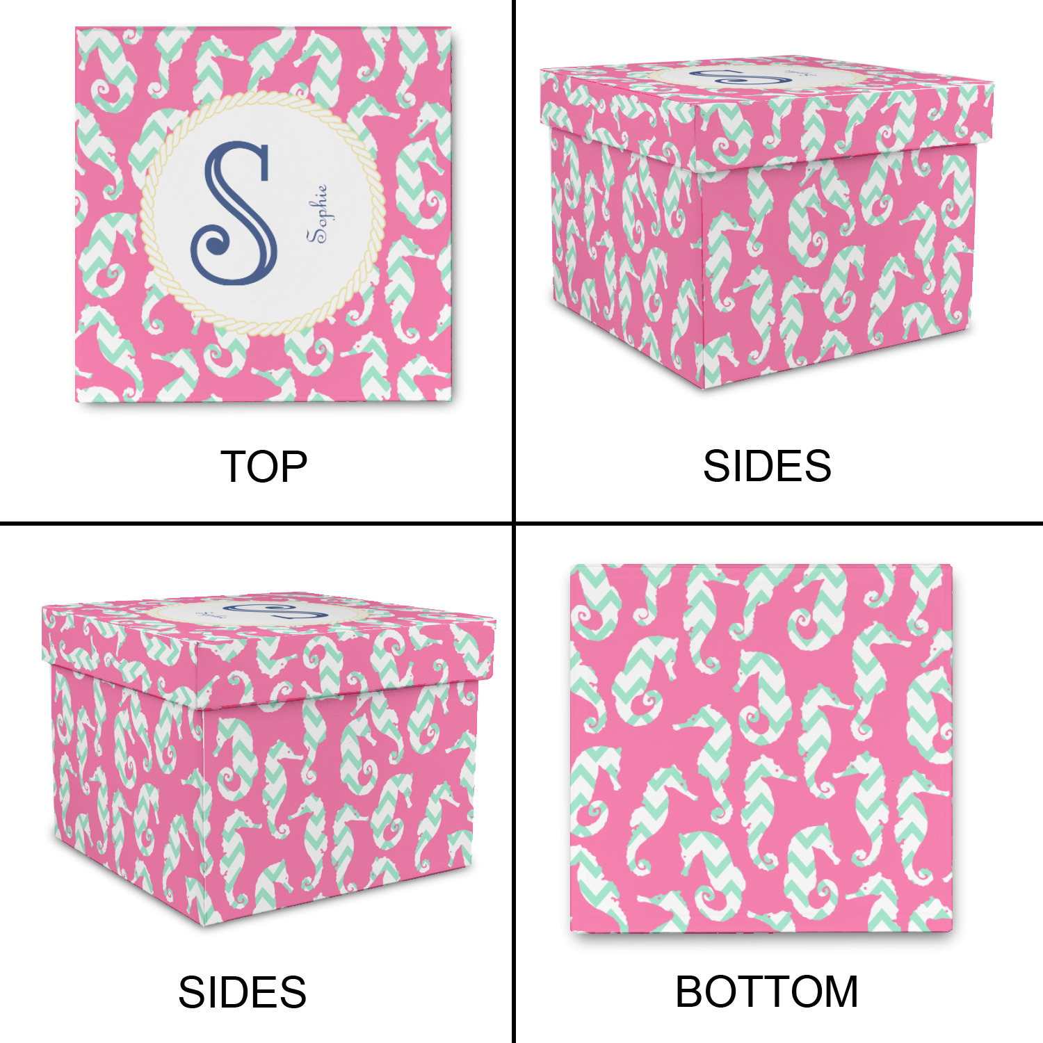 This sea horse design combines the beauty of seahorses with the fun loving chevron pattern. The design features mint, a bubble gum pink background and some gold colors, all of which can be customized to your favorite colors with just a few clicks!