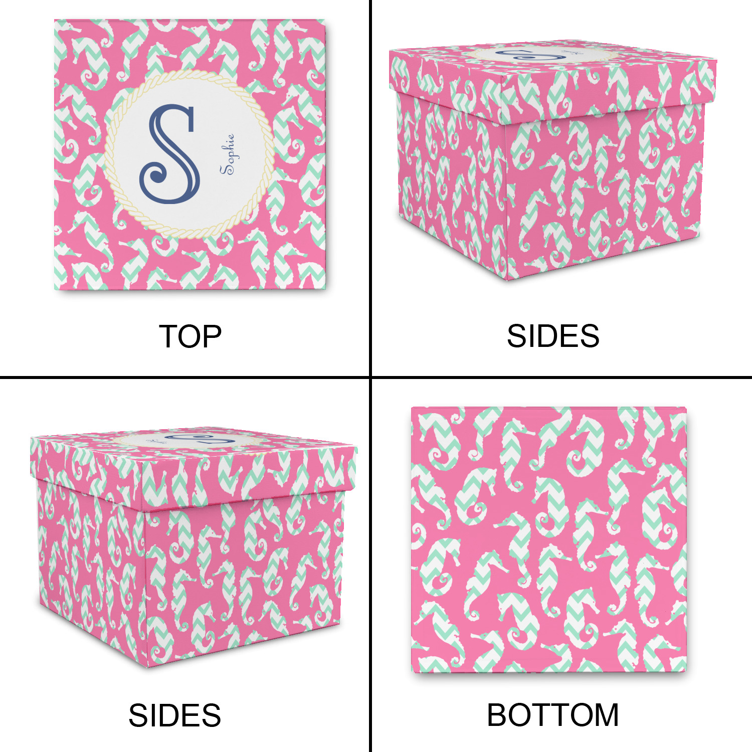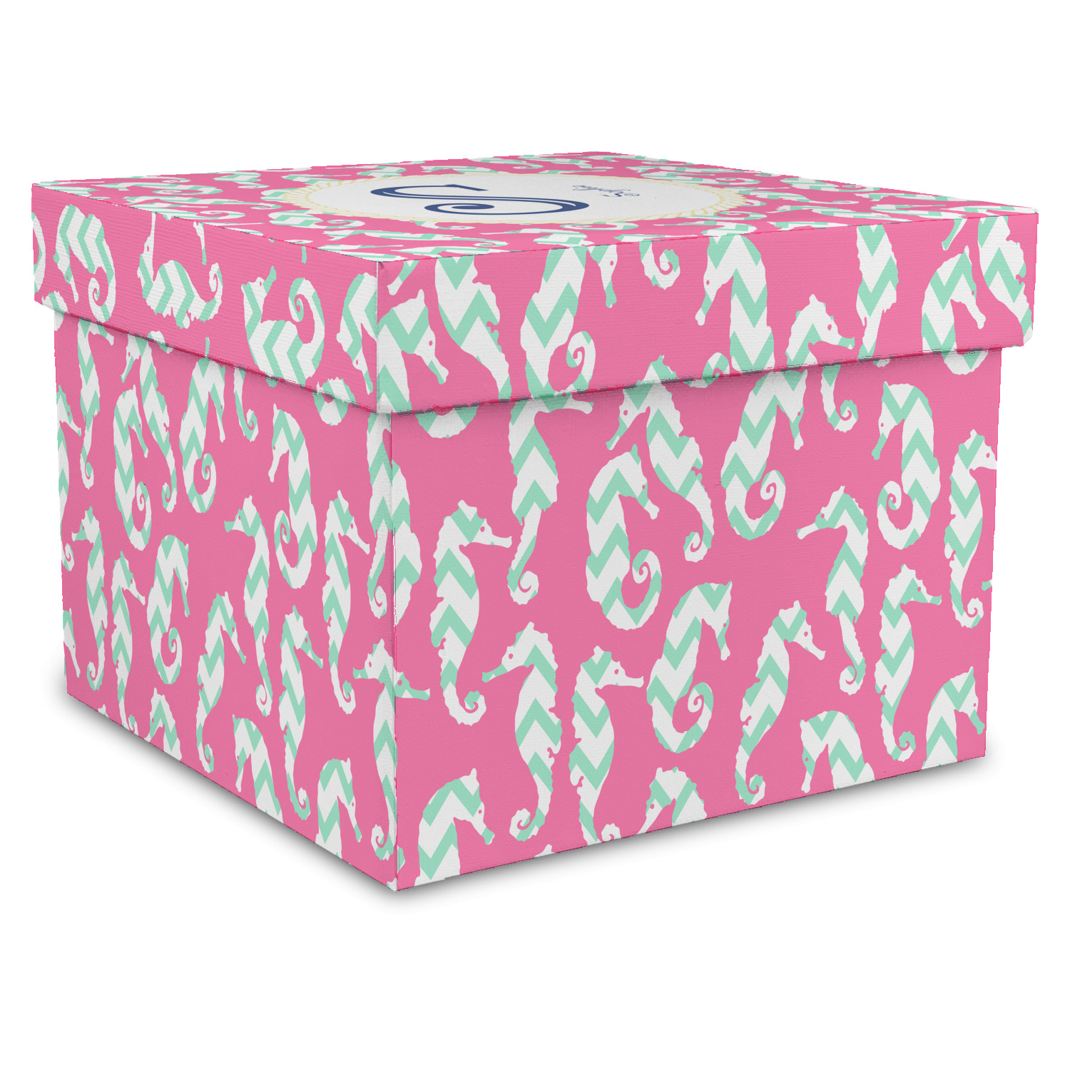 This sea horse design combines the beauty of seahorses with the fun loving chevron pattern. The design features mint, a bubble gum pink background and some gold colors, all of which can be customized to your favorite colors with just a few clicks!