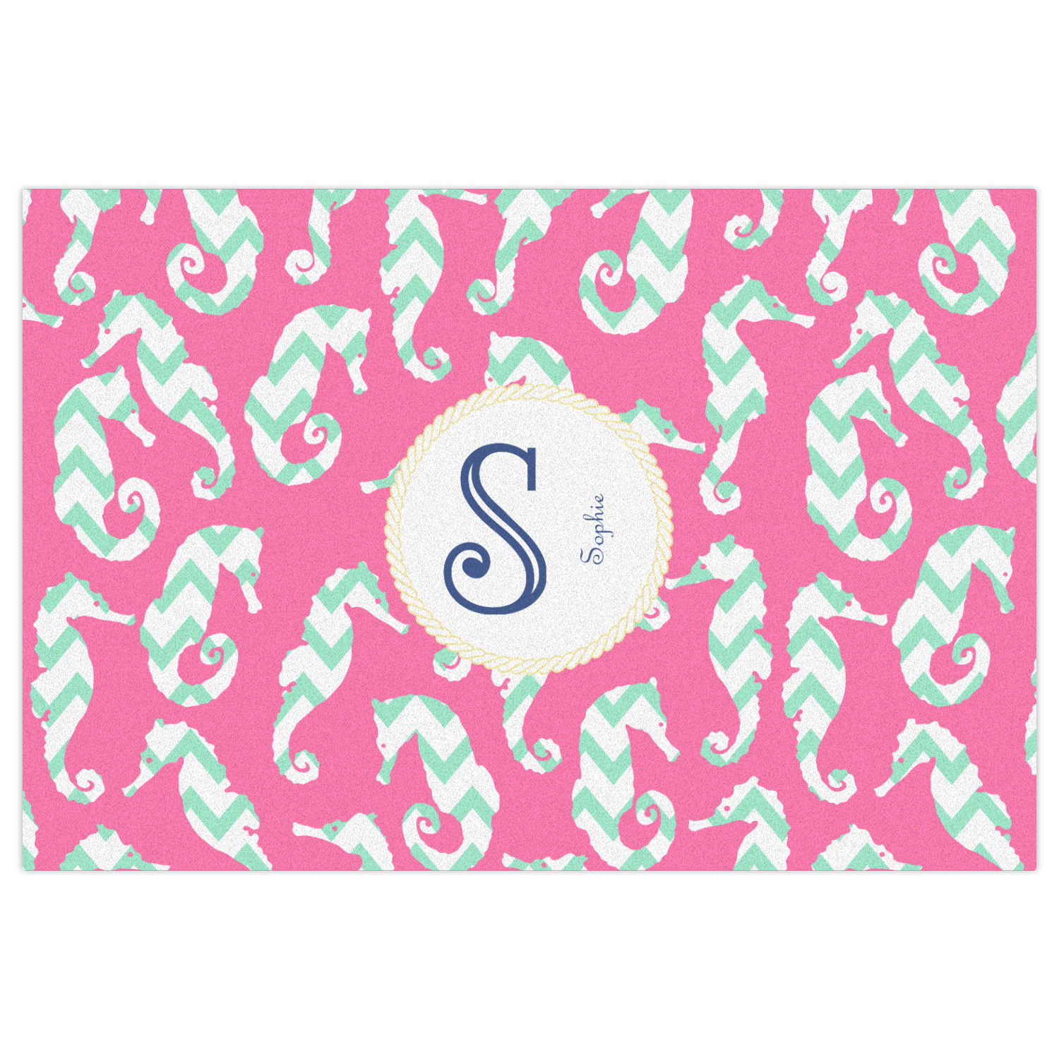 This sea horse design combines the beauty of seahorses with the fun loving chevron pattern. The design features mint, a bubble gum pink background and some gold colors, all of which can be customized to your favorite colors with just a few clicks!