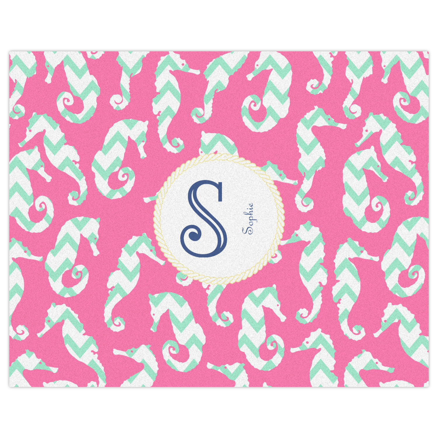 This sea horse design combines the beauty of seahorses with the fun loving chevron pattern. The design features mint, a bubble gum pink background and some gold colors, all of which can be customized to your favorite colors with just a few clicks!