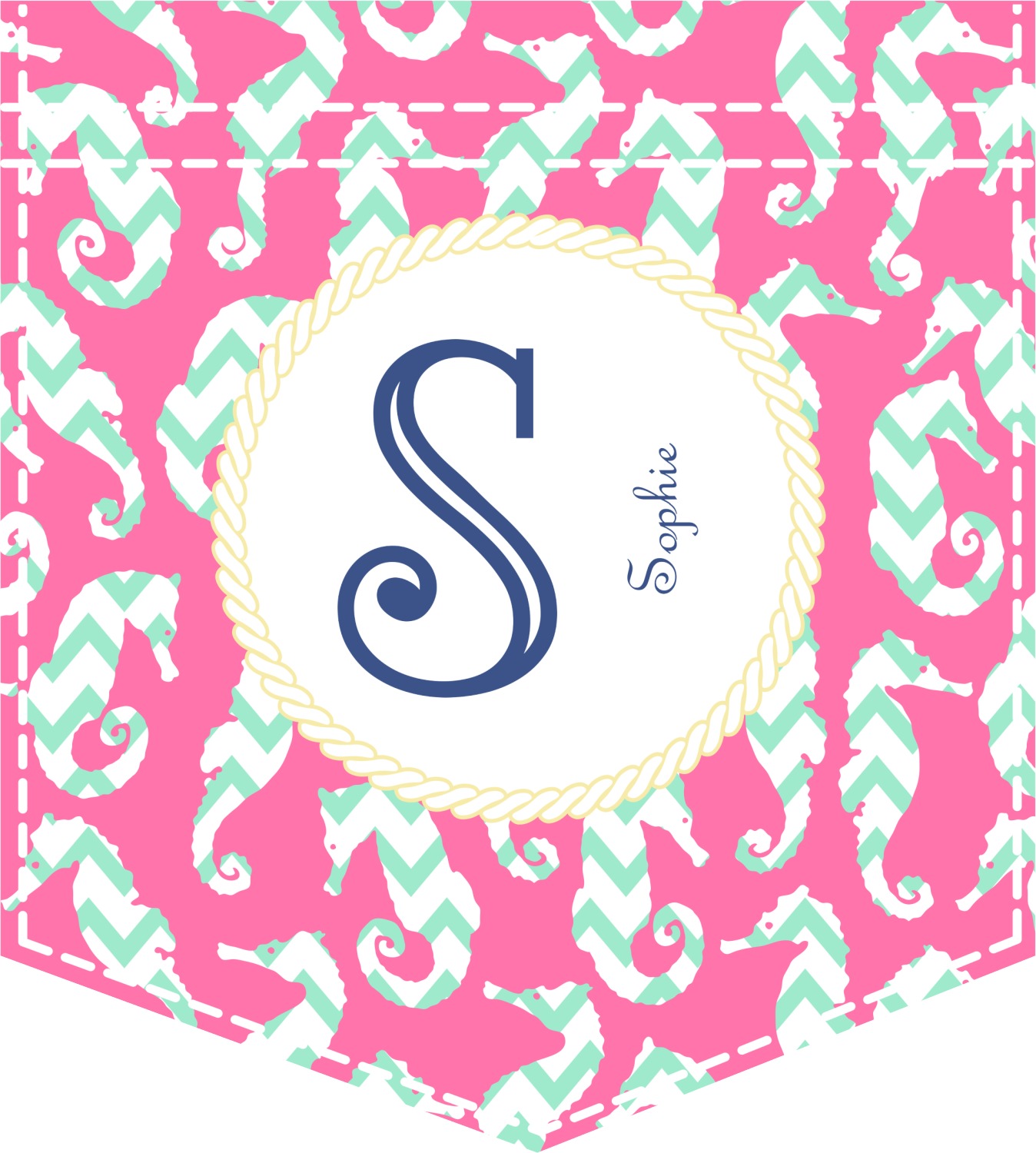 This sea horse design combines the beauty of seahorses with the fun loving chevron pattern. The design features mint, a bubble gum pink background and some gold colors, all of which can be customized to your favorite colors with just a few clicks!