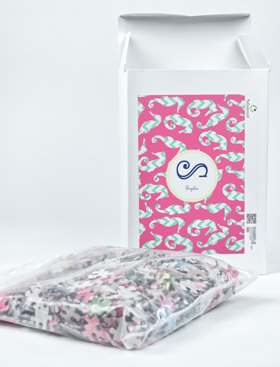You can also upload your logo or art that you or your kids drew. To create more challenging jigsaw puzzles, you can create a pattern from with your logo or artwork. You can also add other elements such as text or personalization.