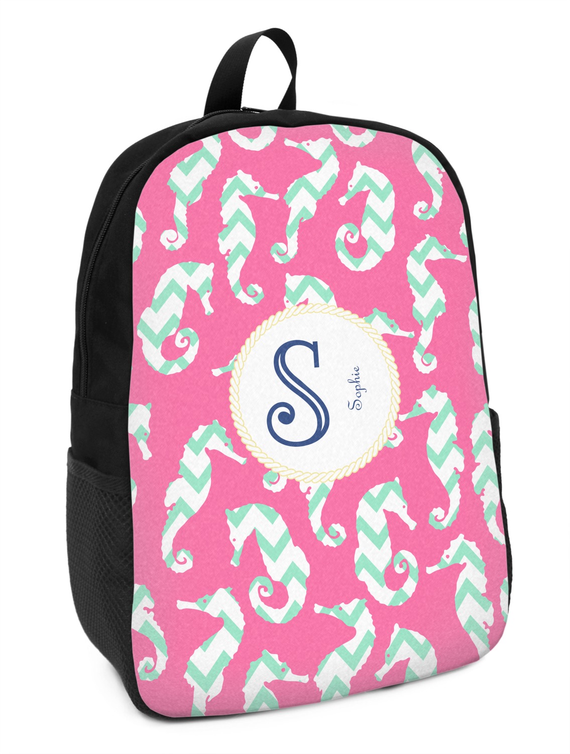 This sea horse design combines the beauty of seahorses with the fun loving chevron pattern. The design features mint, a bubble gum pink background and some gold colors, all of which can be customized to your favorite colors with just a few clicks!