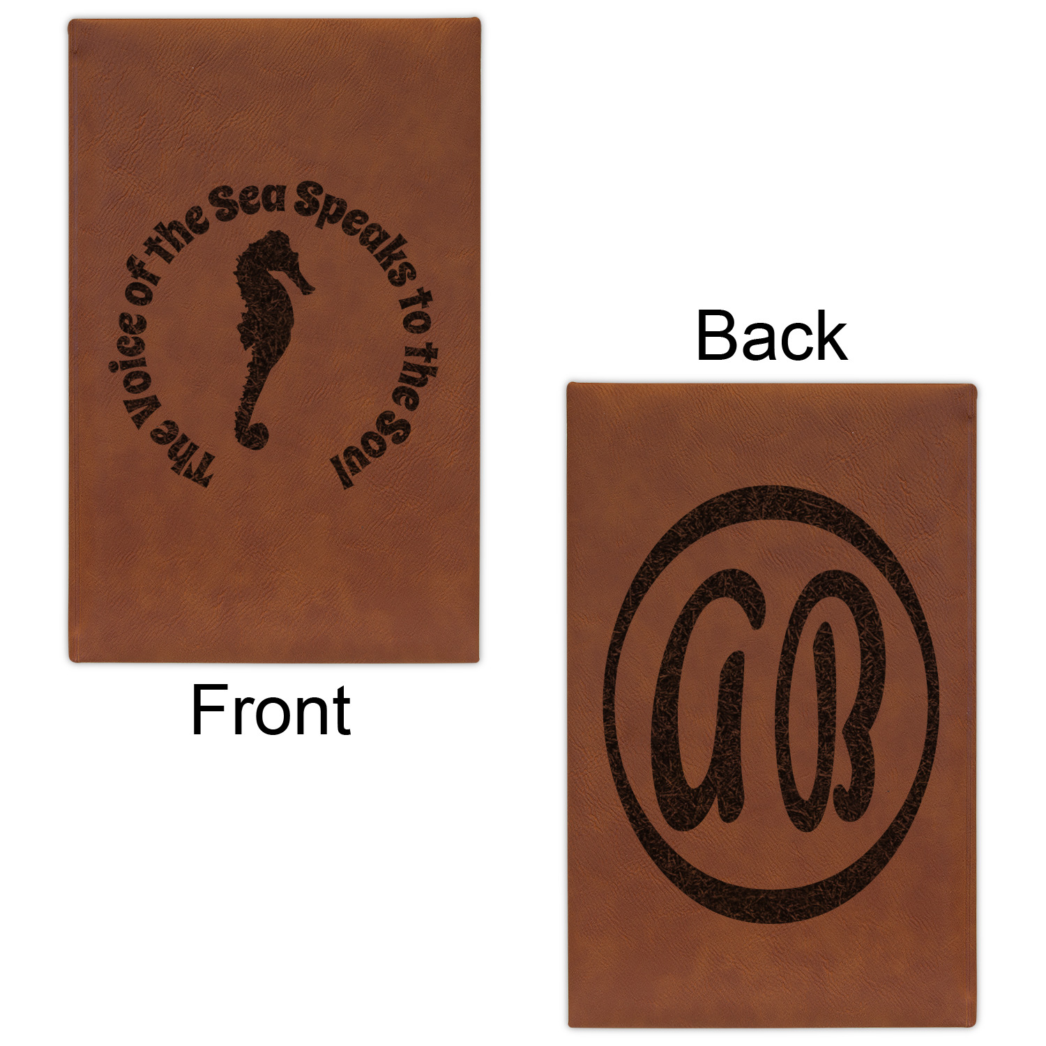The faux leather covers are a rich cognac / rawhide color and can be customized with your design. From a simple name or monogram or a logo to a detailed mandala - the choice for customization & personalization is truly yours. Customize one of our designs or upload your own.