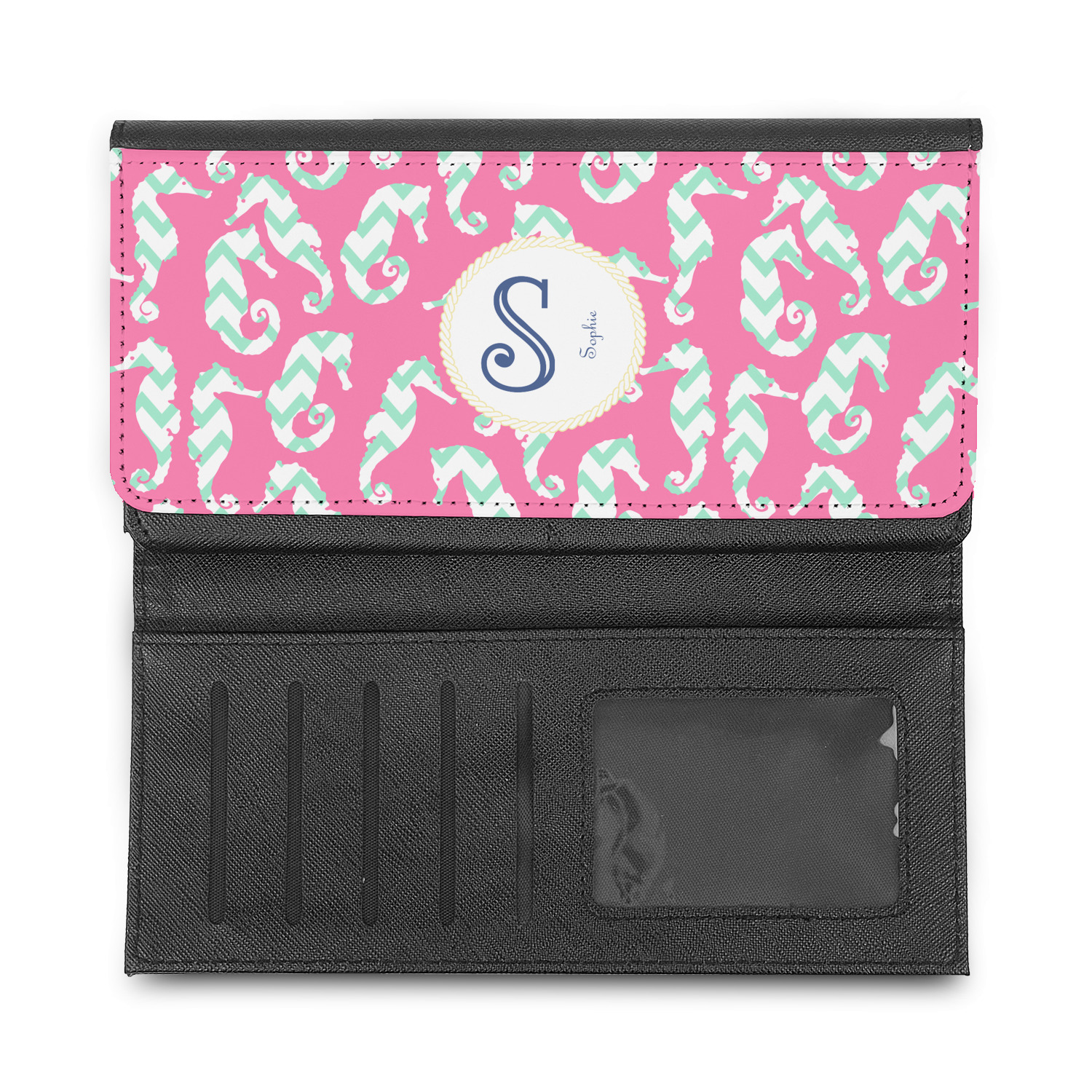 These leatherette ladies wallets can be customized with any one of our patterns (many patterns are available in multiple colors). Of course adding personalization (free) is your choice - you can include a monogram (interlocking is my favorite), a name, or one of our beautiful name and initial combinations.