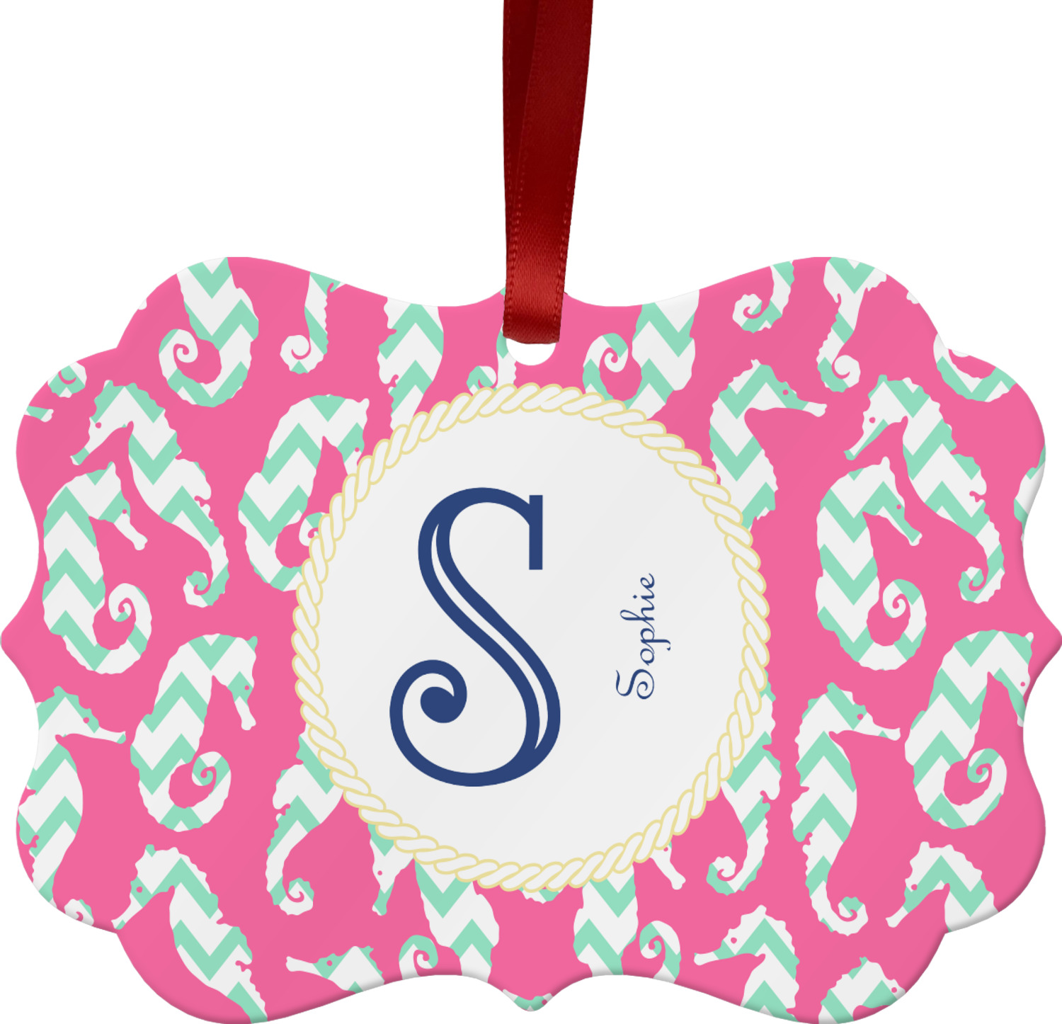 This sea horse design combines the beauty of seahorses with the fun loving chevron pattern. The design features mint, a bubble gum pink background and some gold colors, all of which can be customized to your favorite colors with just a few clicks!