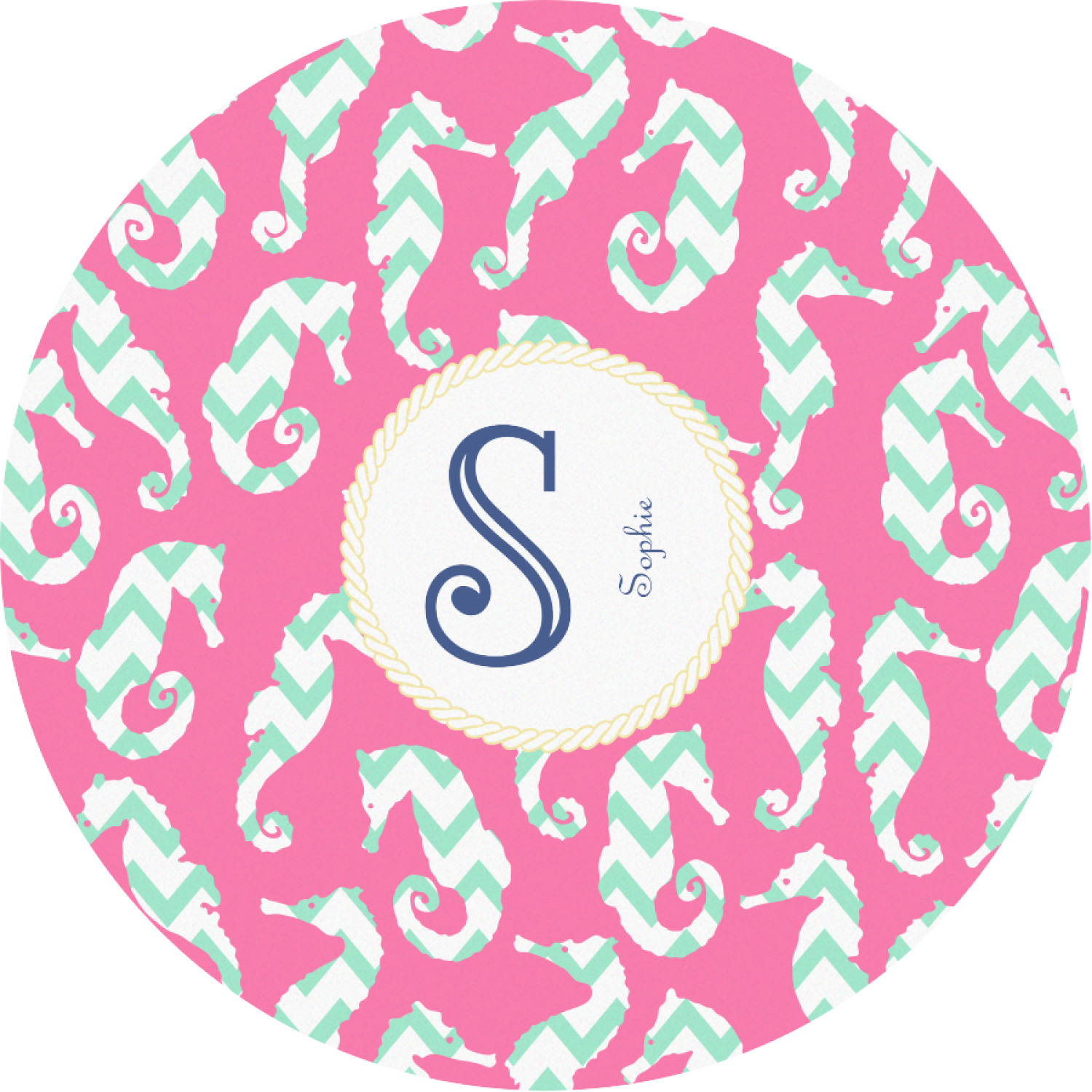This sea horse design combines the beauty of seahorses with the fun loving chevron pattern. The design features mint, a bubble gum pink background and some gold colors, all of which can be customized to your favorite colors with just a few clicks!