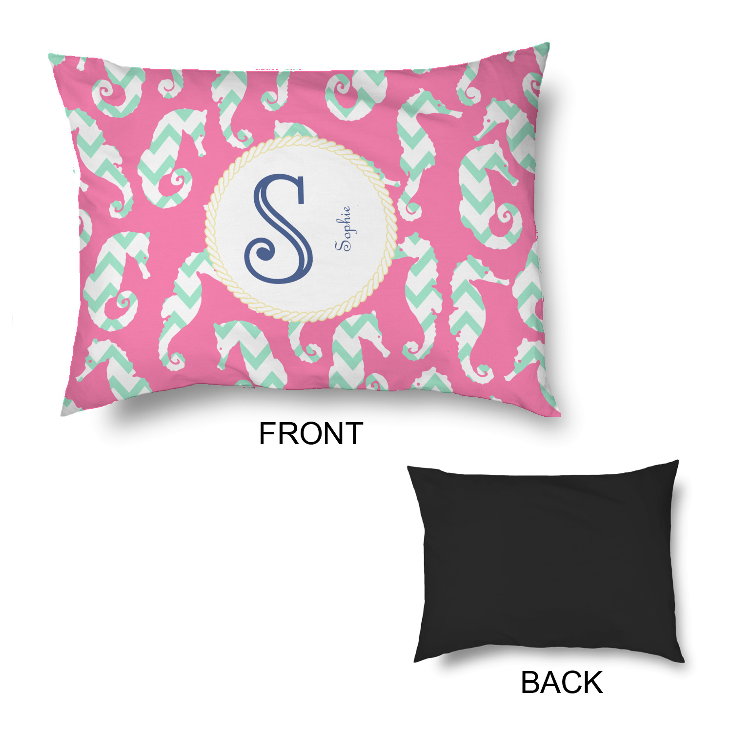 This sea horse design combines the beauty of seahorses with the fun loving chevron pattern. The design features mint, a bubble gum pink background and some gold colors, all of which can be customized to your favorite colors with just a few clicks!