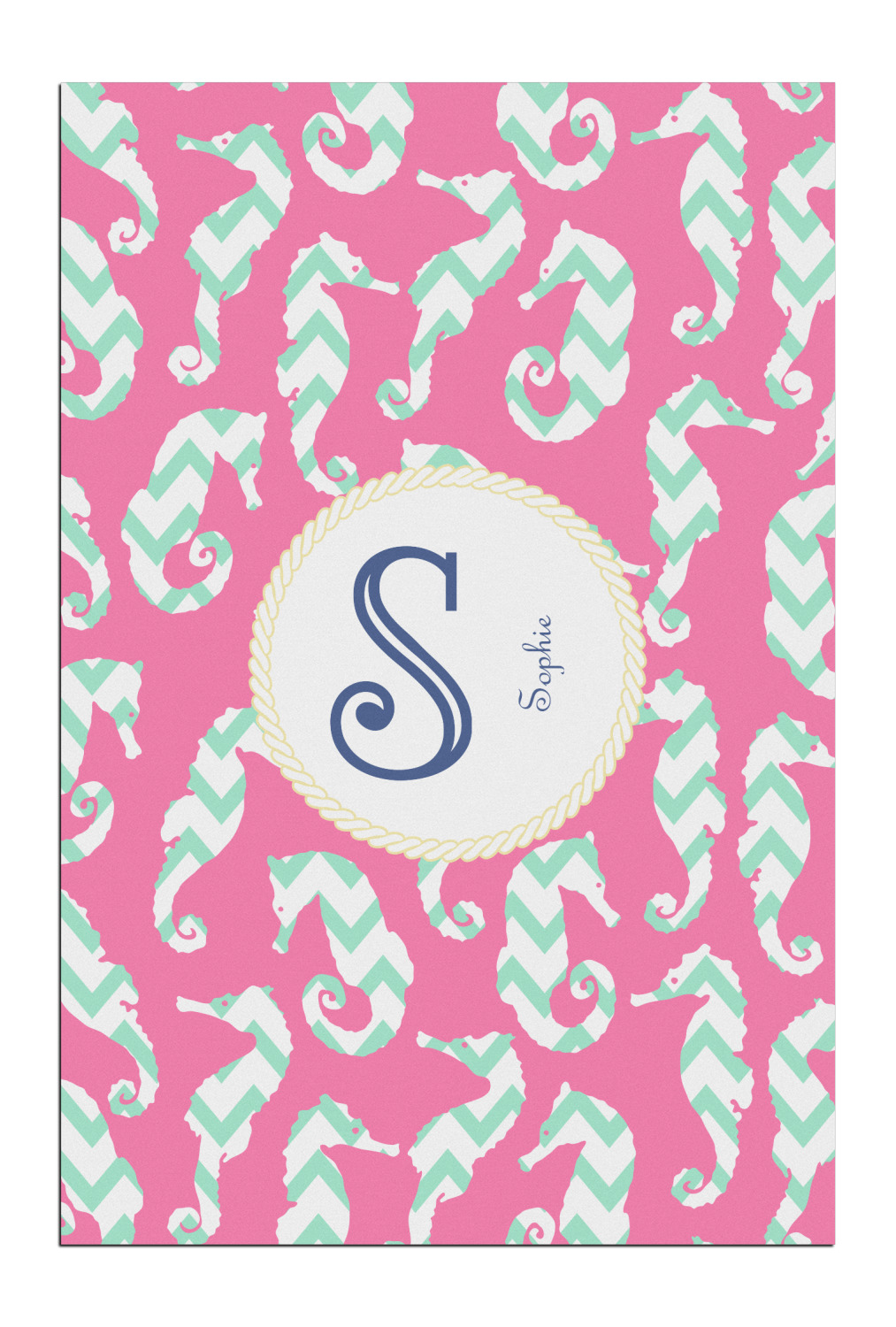 This sea horse design combines the beauty of seahorses with the fun loving chevron pattern. The design features mint, a bubble gum pink background and some gold colors, all of which can be customized to your favorite colors with just a few clicks!