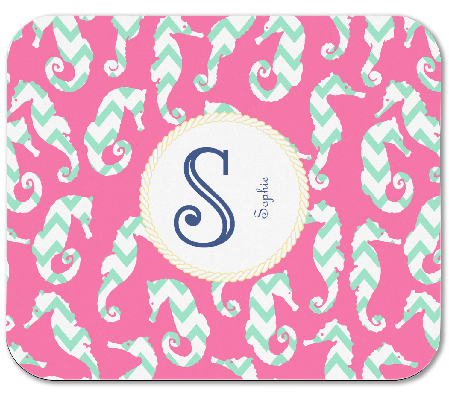 This sea horse design combines the beauty of seahorses with the fun loving chevron pattern. The design features mint, a bubble gum pink background and some gold colors, all of which can be customized to your favorite colors with just a few clicks!