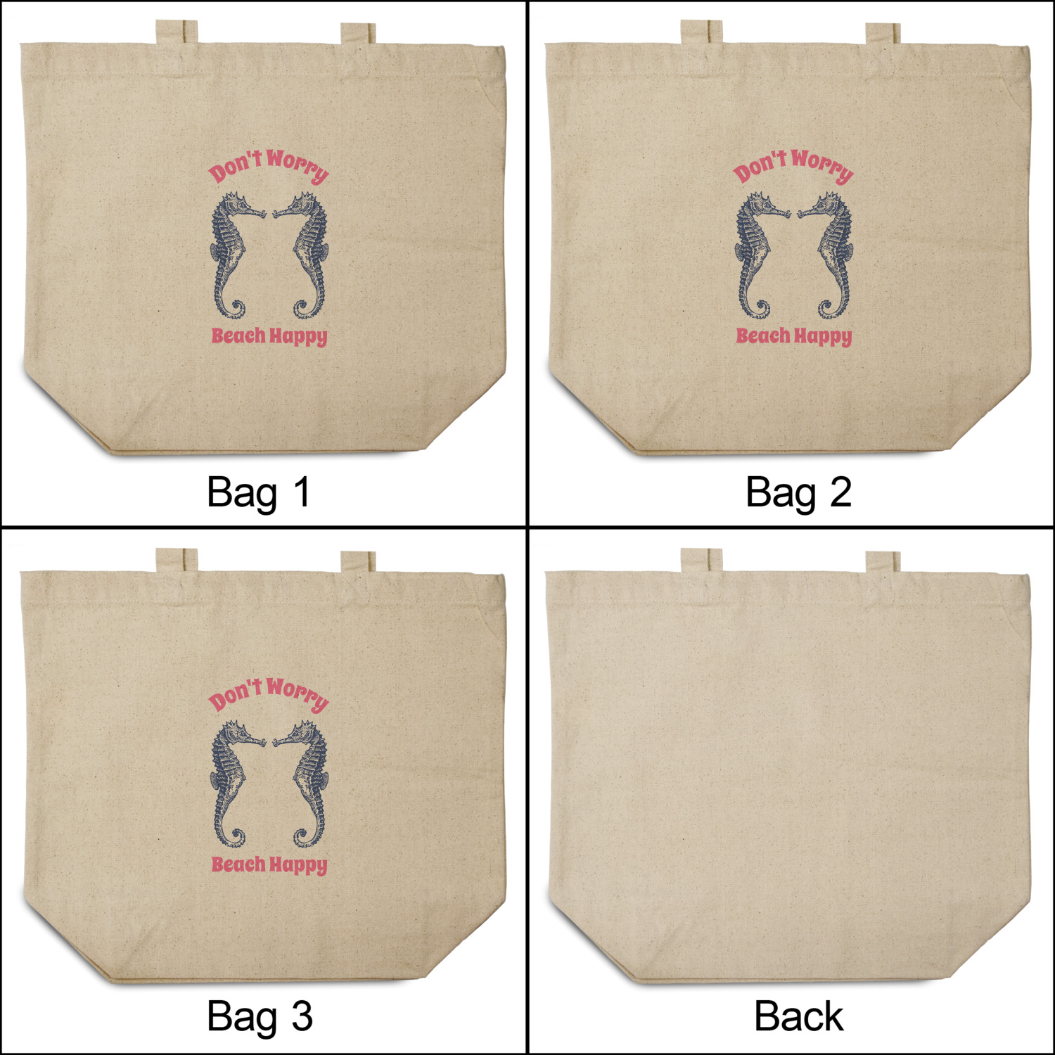 Coastal / Beach Style Designs for Reusable Cotton Grocery Bags - Set of 3