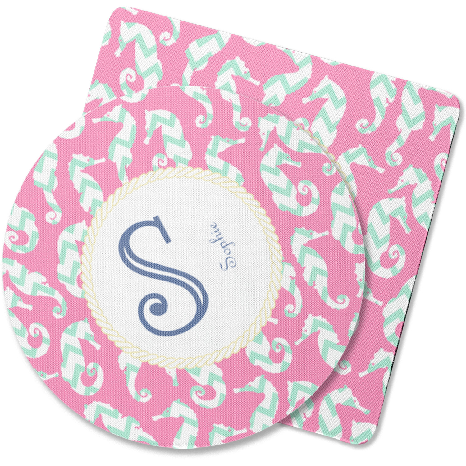 This sea horse design combines the beauty of seahorses with the fun loving chevron pattern. The design features mint, a bubble gum pink background and some gold colors, all of which can be customized to your favorite colors with just a few clicks!