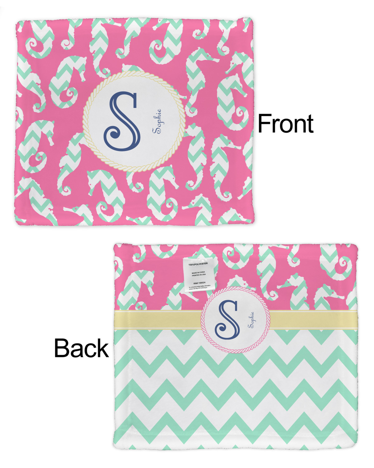 Crafted from an ultra soft fleece, these lovey blankets are the perfect, portable size to follow your child on any of his or her adventures. The plush texture also makes them ideal for naptime. Each personalized baby blanket measures at approximately 12 by 11 inches.