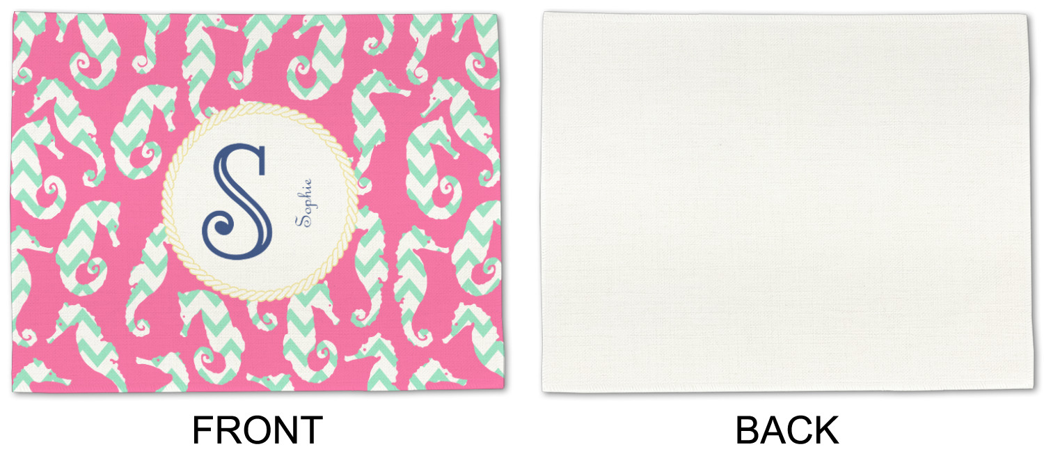 This sea horse design combines the beauty of seahorses with the fun loving chevron pattern. The design features mint, a bubble gum pink background and some gold colors, all of which can be customized to your favorite colors with just a few clicks!