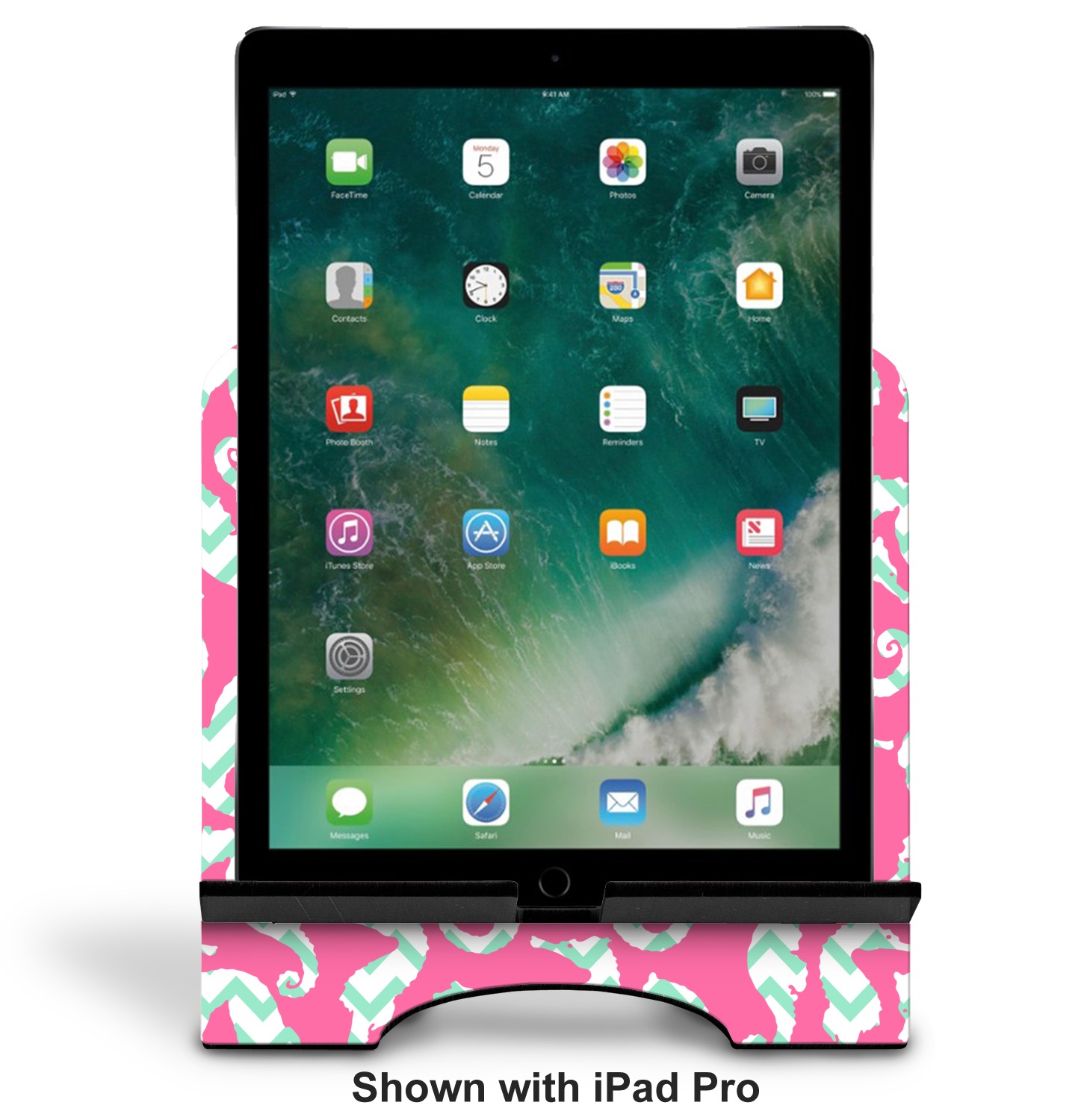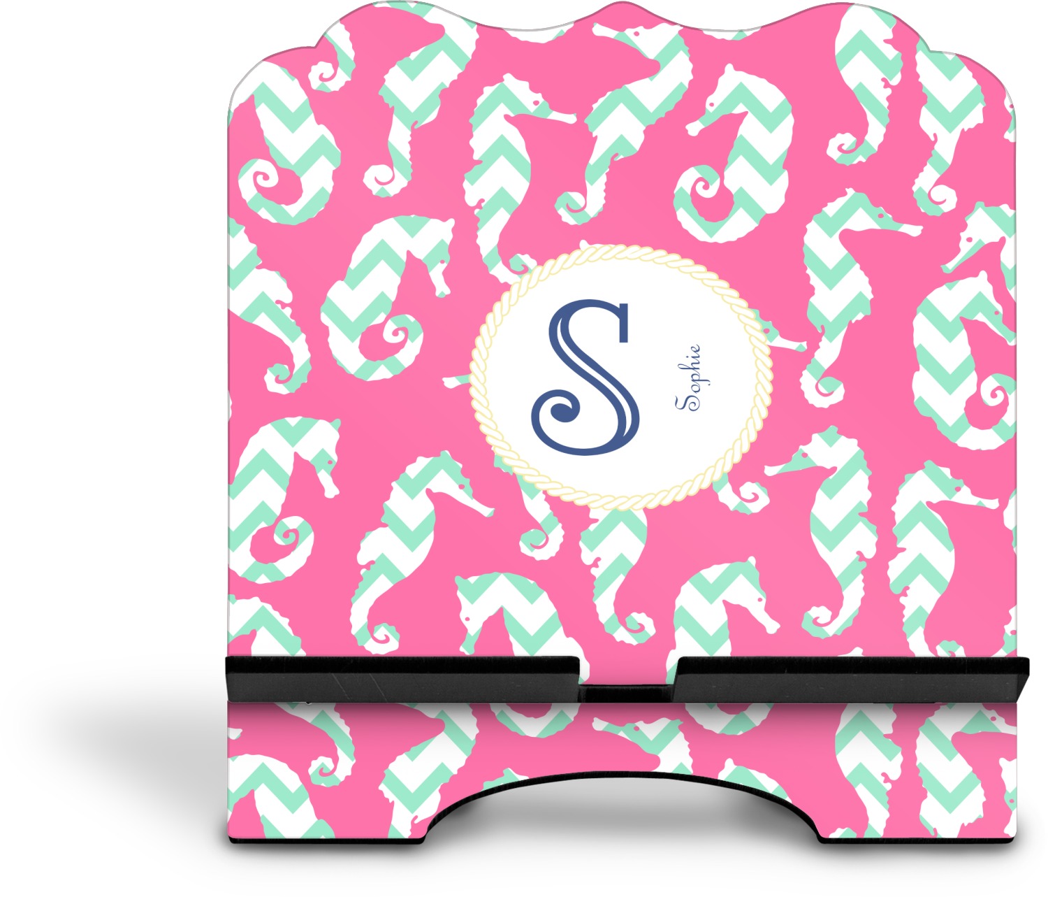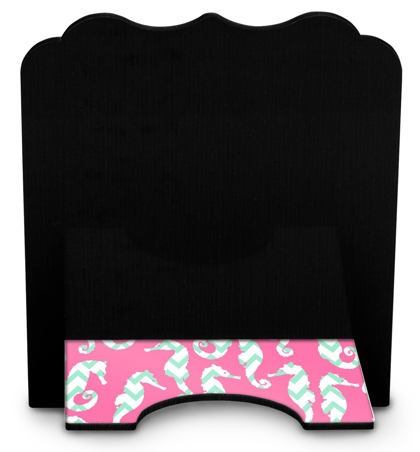 This sea horse design combines the beauty of seahorses with the fun loving chevron pattern. The design features mint, a bubble gum pink background and some gold colors, all of which can be customized to your favorite colors with just a few clicks!
