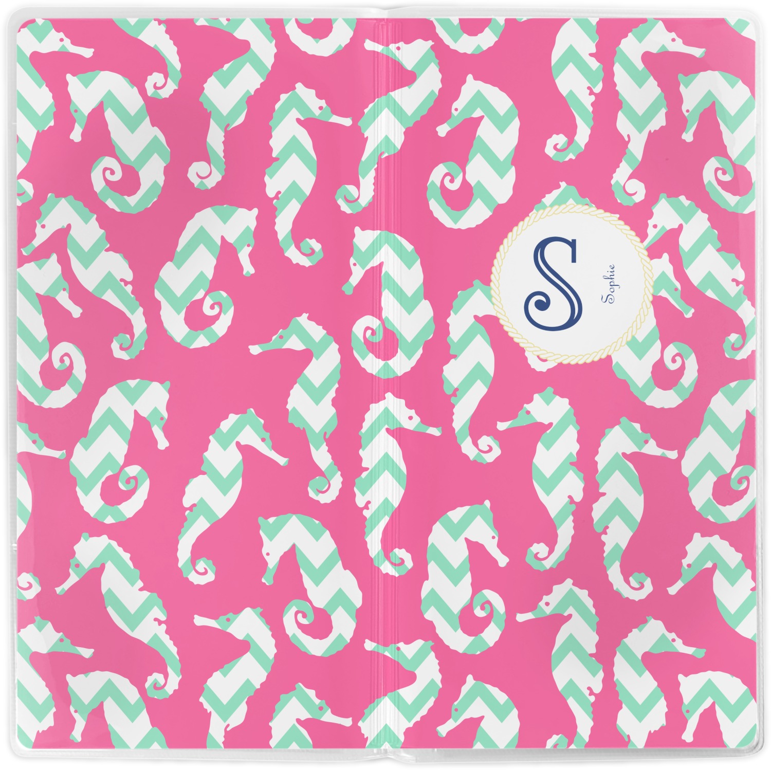 This sea horse design combines the beauty of seahorses with the fun loving chevron pattern. The design features mint, a bubble gum pink background and some gold colors, all of which can be customized to your favorite colors with just a few clicks!