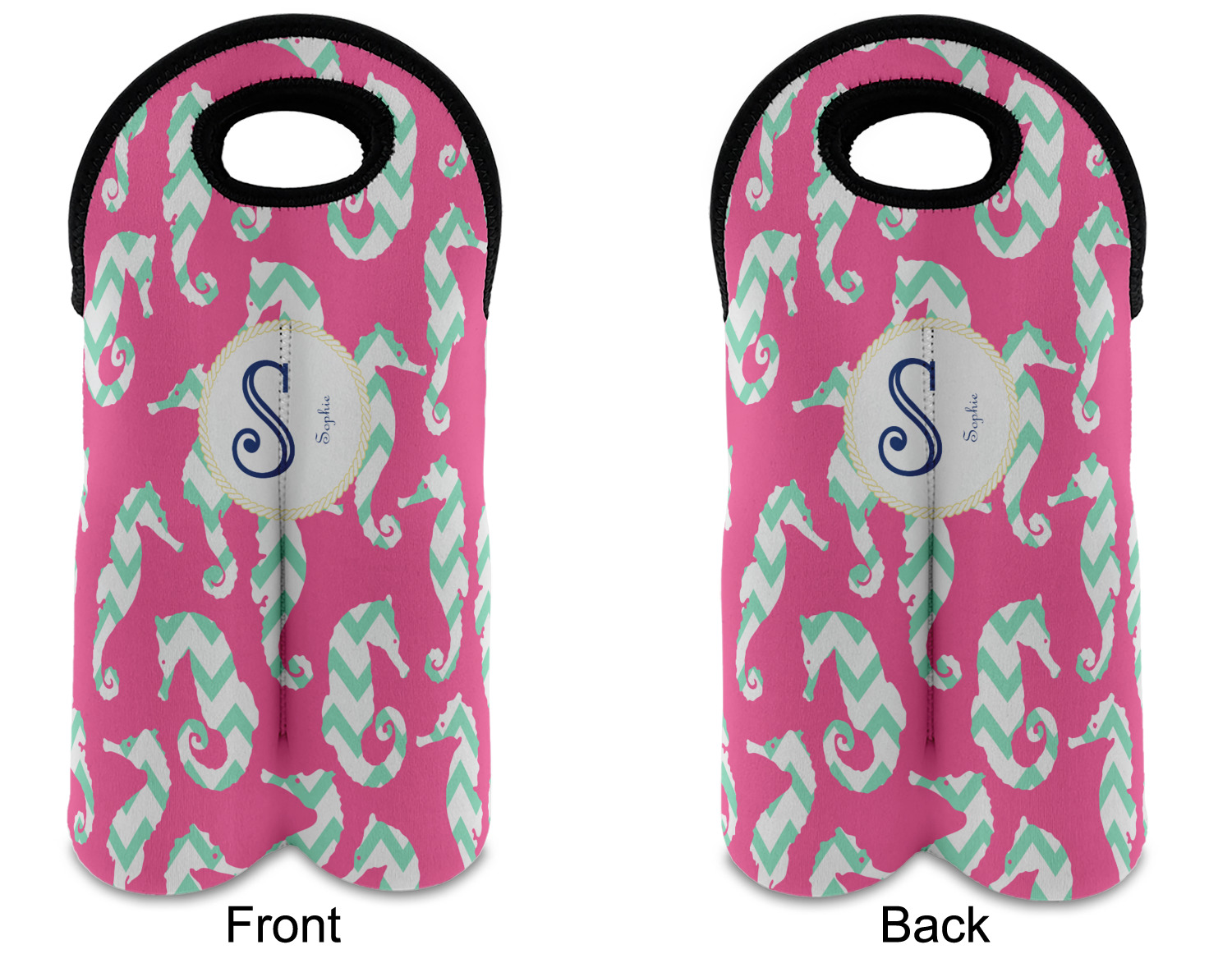 These tote bags are insulated to keep the bottles cold and have a stitched separation down the middle and double handles to keep the two bottles safe and secure during travels.