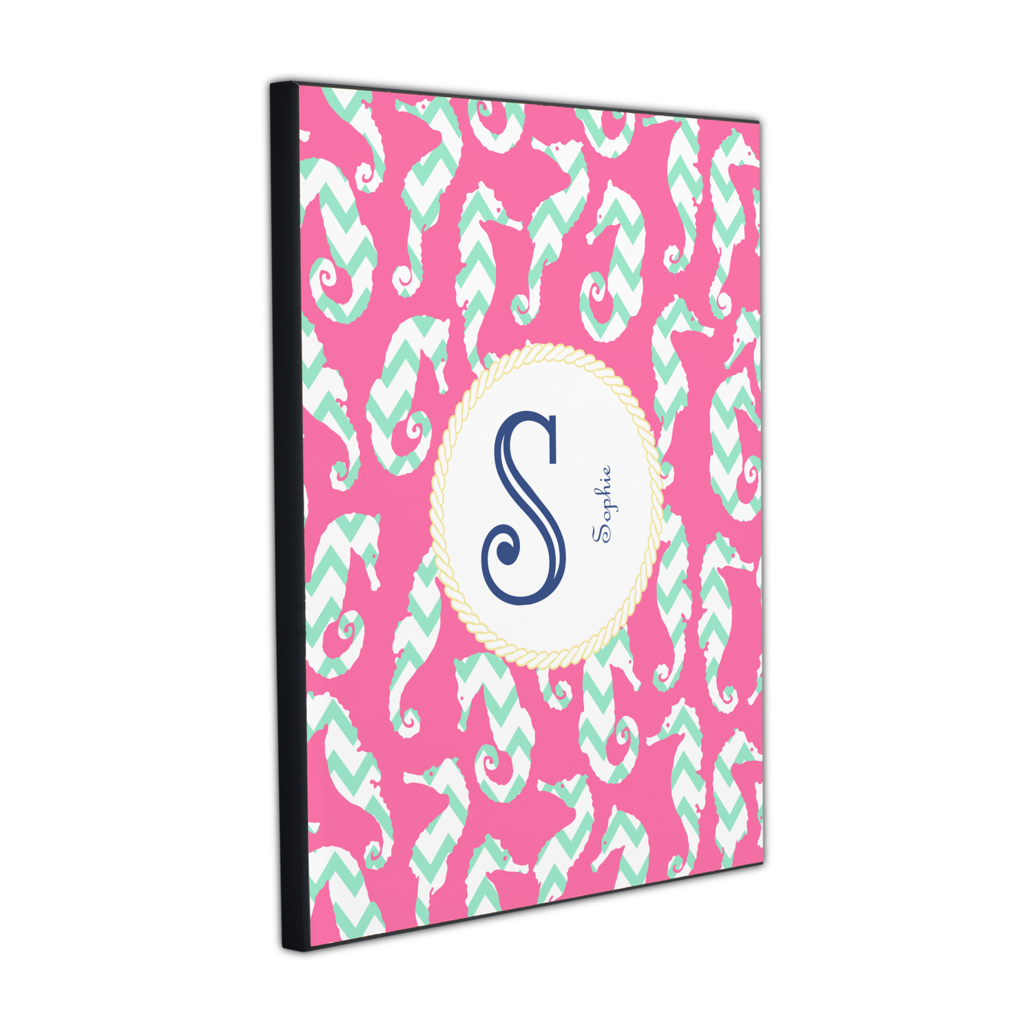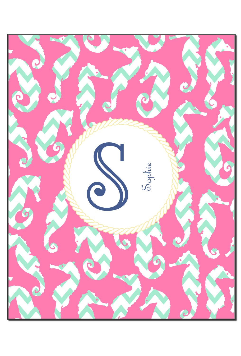 This sea horse design combines the beauty of seahorses with the fun loving chevron pattern. The design features mint, a bubble gum pink background and some gold colors, all of which can be customized to your favorite colors with just a few clicks!