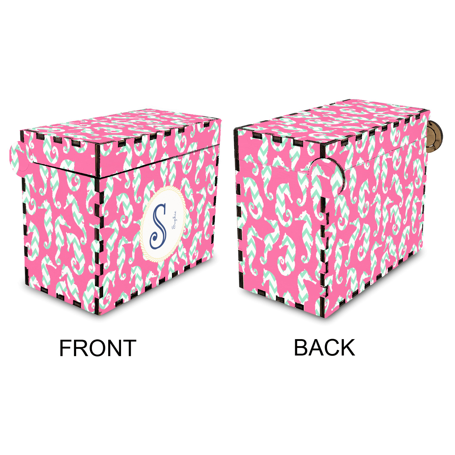 This sea horse design combines the beauty of seahorses with the fun loving chevron pattern. The design features mint, a bubble gum pink background and some gold colors, all of which can be customized to your favorite colors with just a few clicks!