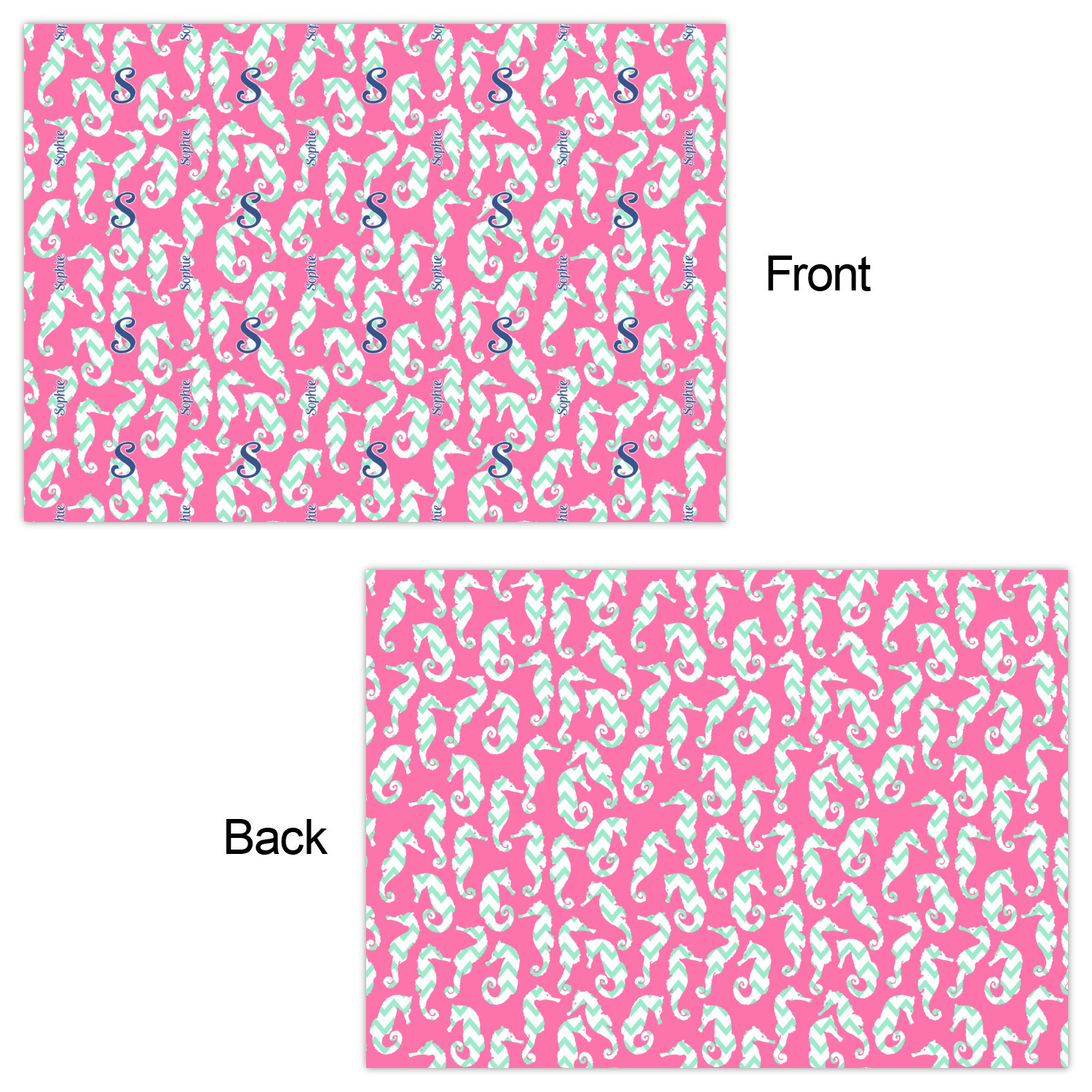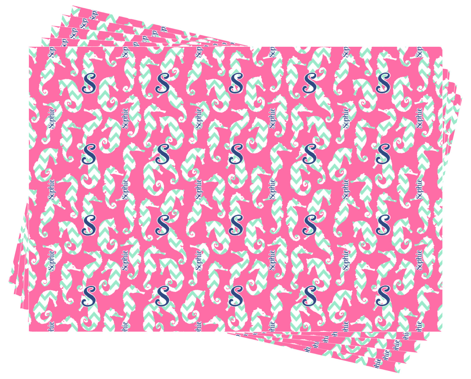 This sea horse design combines the beauty of seahorses with the fun loving chevron pattern. The design features mint, a bubble gum pink background and some gold colors, all of which can be customized to your favorite colors with just a few clicks!